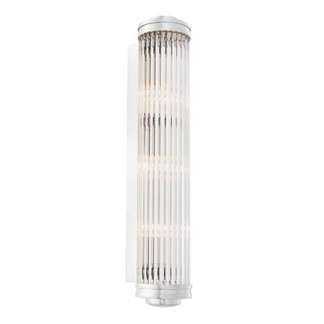 Bathe your interior in a soft and warm glow with the nickel finished Gascogne XL Wall Lamp, featuring a shade of ribbed and bevelled clear glass. Inspired by Art Deco theater lamps, this alluring sconce will add cosmopolitan style and glamour to your home decor.