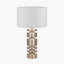 Elon Champagne Gold Metal Stacked Cylinder Table Lamp Base with Lino 35cm White Self Lined Linen Cylinder Lampshade | House of Isabella UKSkip to content
