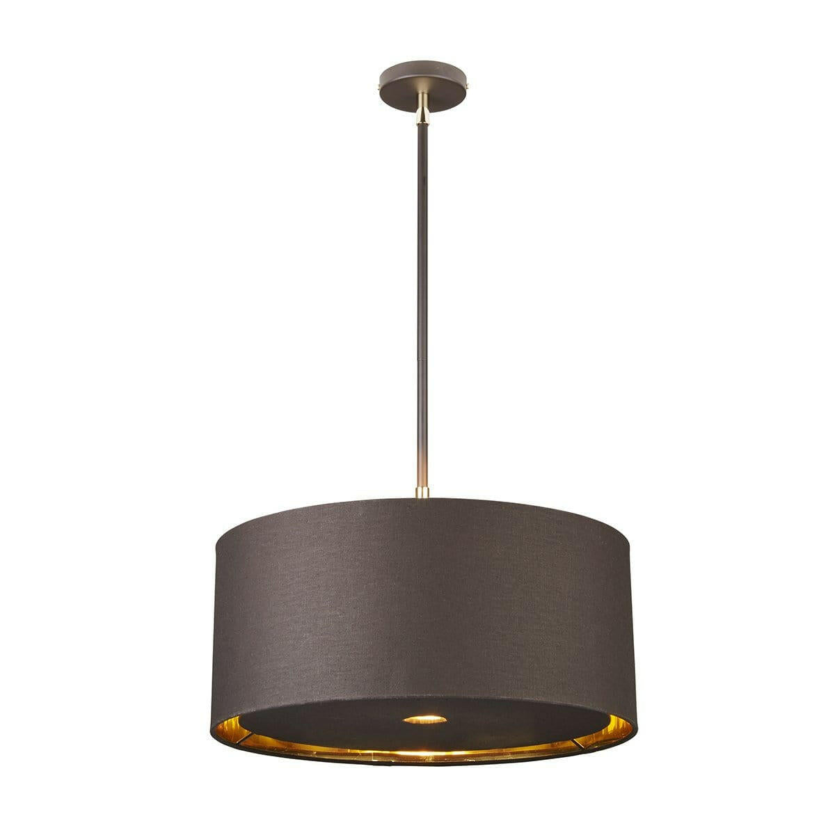 The Balance’s contemporary mocha brown finish with polished brass elements adds a retro style to the look of this collection, making it easy to place in both modern and transitional environments, with all fittings easily suited to using LED lamps. Each shade has a gold metallic lining. Pendants, table and floor lamps have fabric diffusers, and the chandeliers and wall lights include acrylic diffusers.