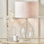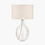 Elevate your interior with our stunning, beautifully curved, clear bubble glass table lamp, crafted in India. The organic shape exudes elegance and will complement any interior style. Topped with a natural coloured, textured linen lampshade, the neutral colours will make it a versatile addition to your decor.
