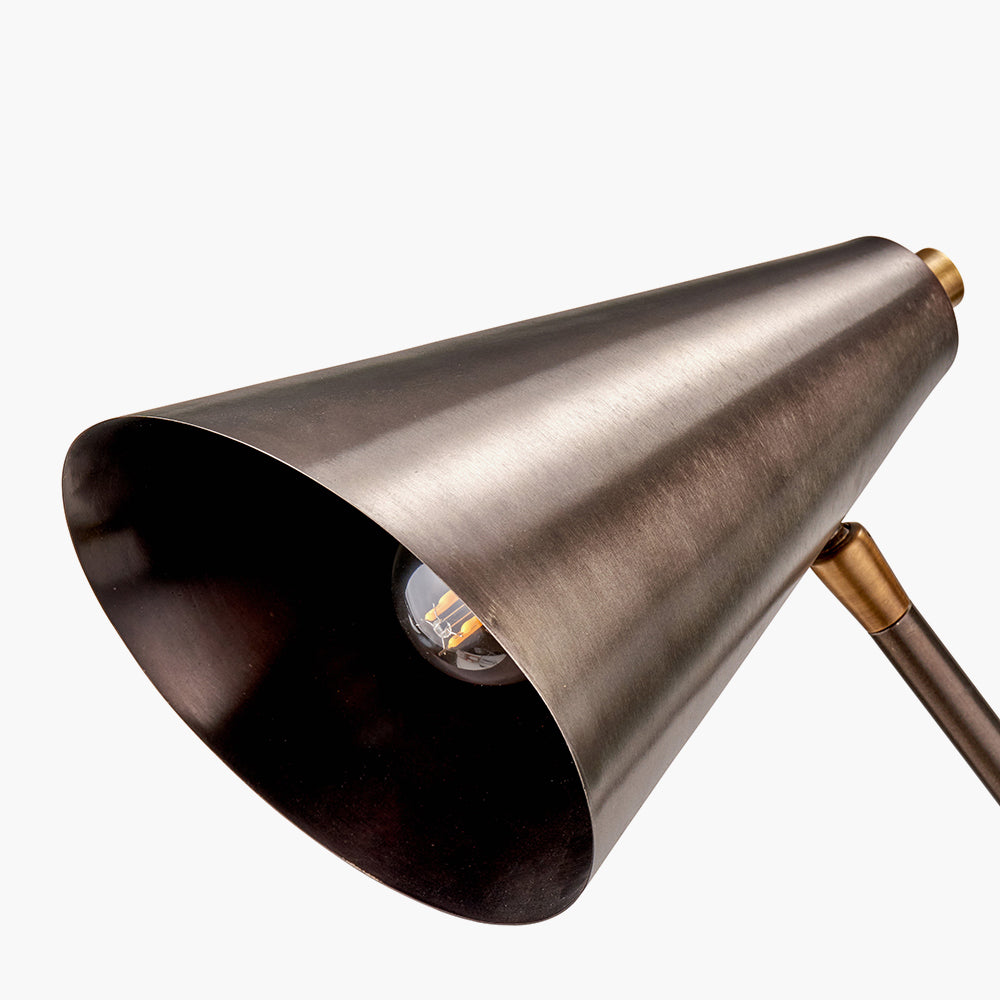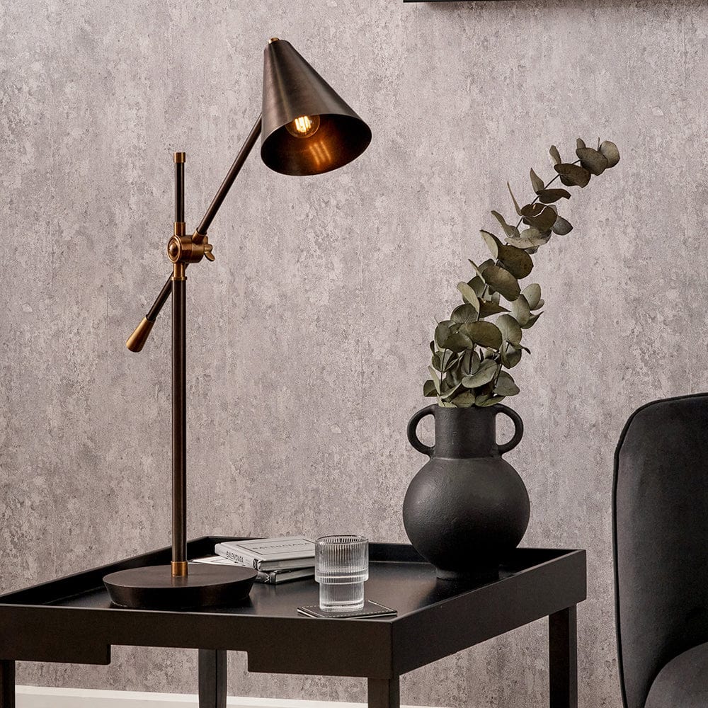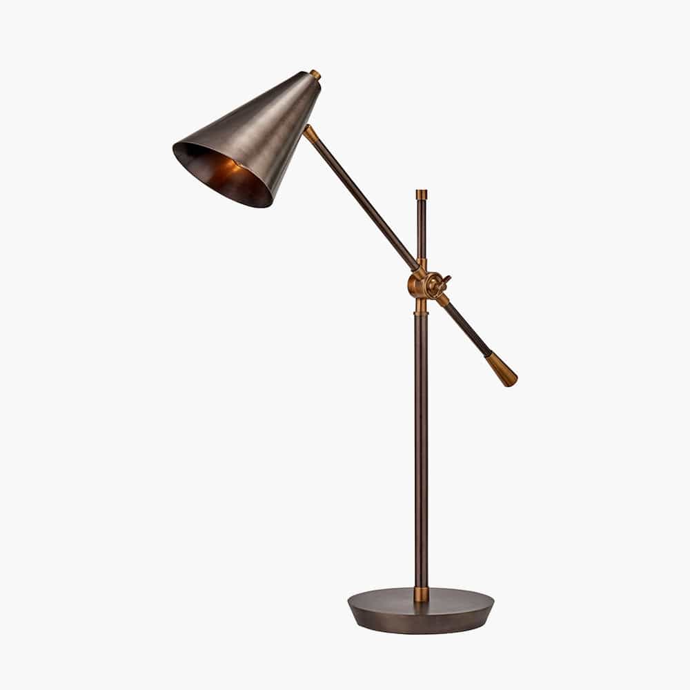 The Emiliano task table lamp combines practicality with elegance, featuring a contemporary antique bronze and antique brass metal finish. Its multi-directional design allows you to adjust the light source precisely where you need it most. Made in India, this gorgeous table lamp is complementary to any workspace or reading nook.