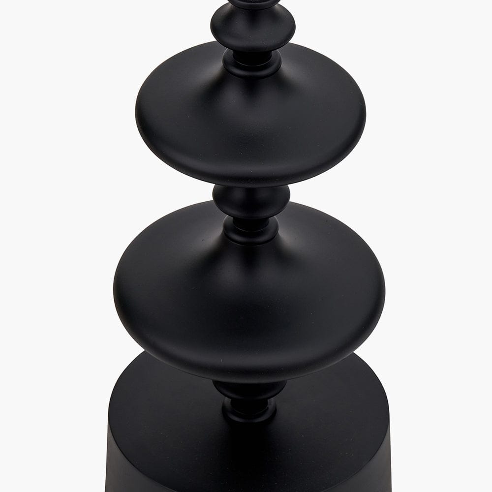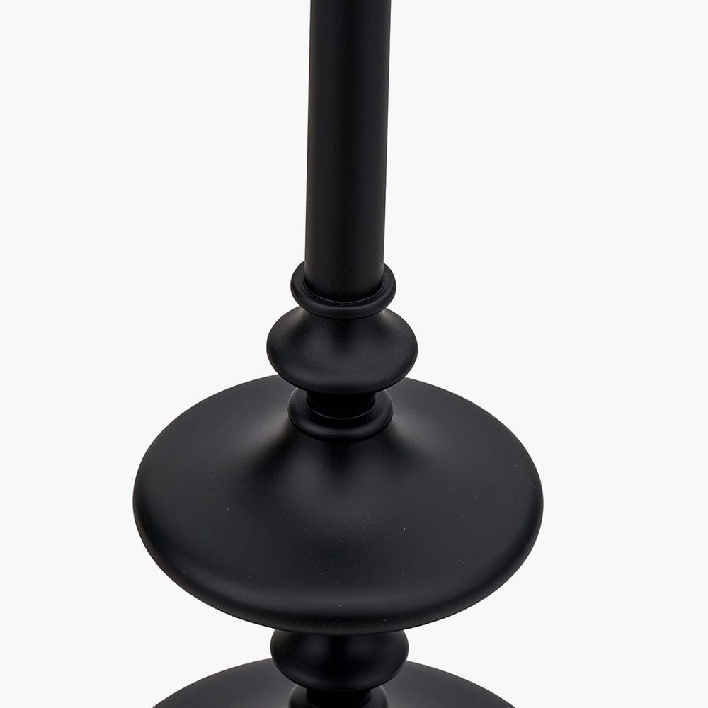 This contemporary floor lamp base in a matt black finish features a sleek candlestick design, making it a bold addition to any space. Crafted in India, the Emilio floor lamp is customisable with a complementary lampshade from our wide selection. Recommended lampshade size 45cms diameter.