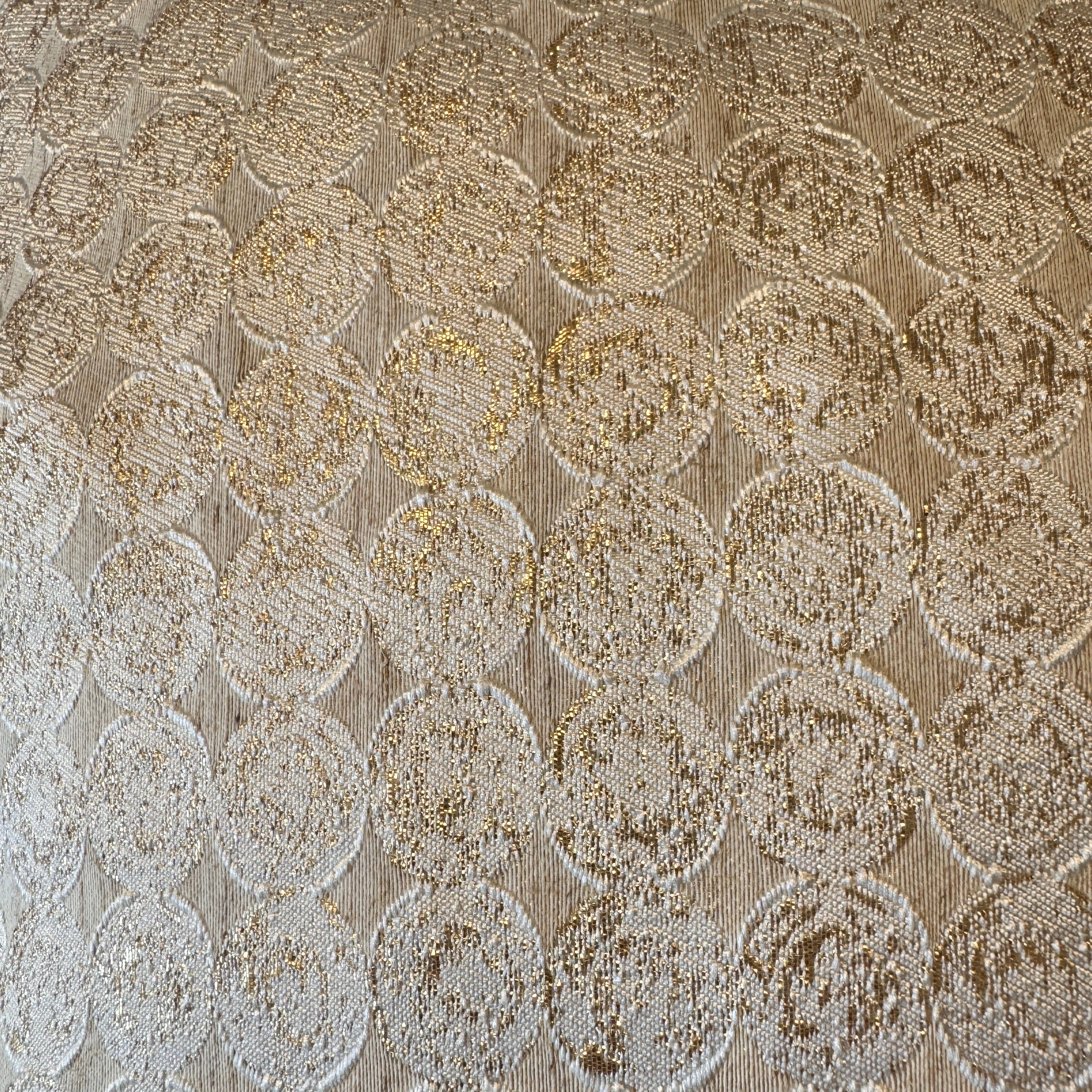 Measuring 50x50cm, this cushion features an elegant textured pattern in soft gold tones with a shimmering metallic finish.