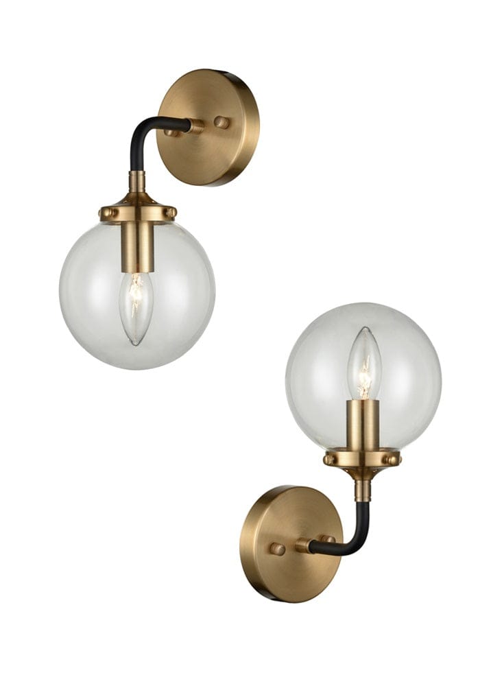 in matt black and antique gold finish with a clear glass sphere.