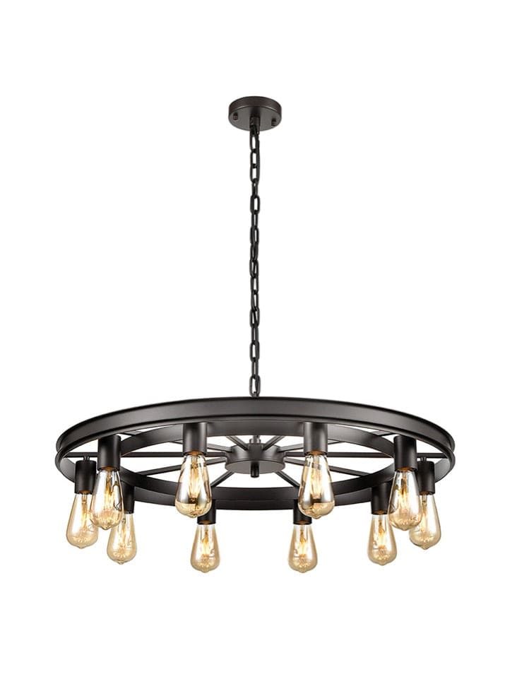 A coffee-finish wheel shaped pendant on a chain suspension, which can be adjusted to a variety of ceiling heights. This fitting is designed to be used with decorative lamps.