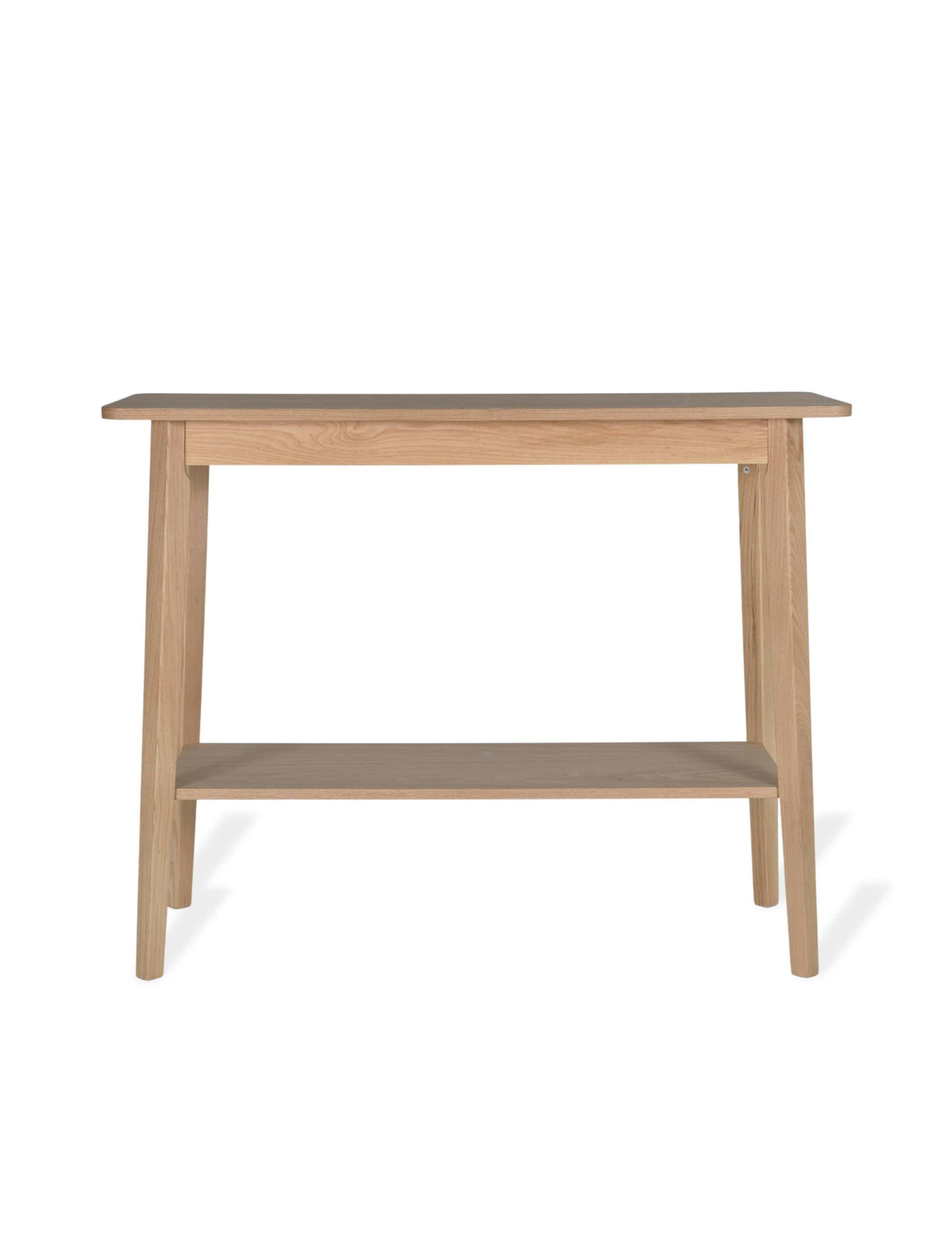 This simple and elegant console table comes beautifully crafted from Ash with a mid-century design. Use the tabletop to arrange books, flowers, plants and other decor. Perfect for slimline entranceway storage, having hats and scarves on hand by utilising the shelf to place storage baskets for easy reach and organisation. The Ashwicke Console Table is an ideal addition to any home.