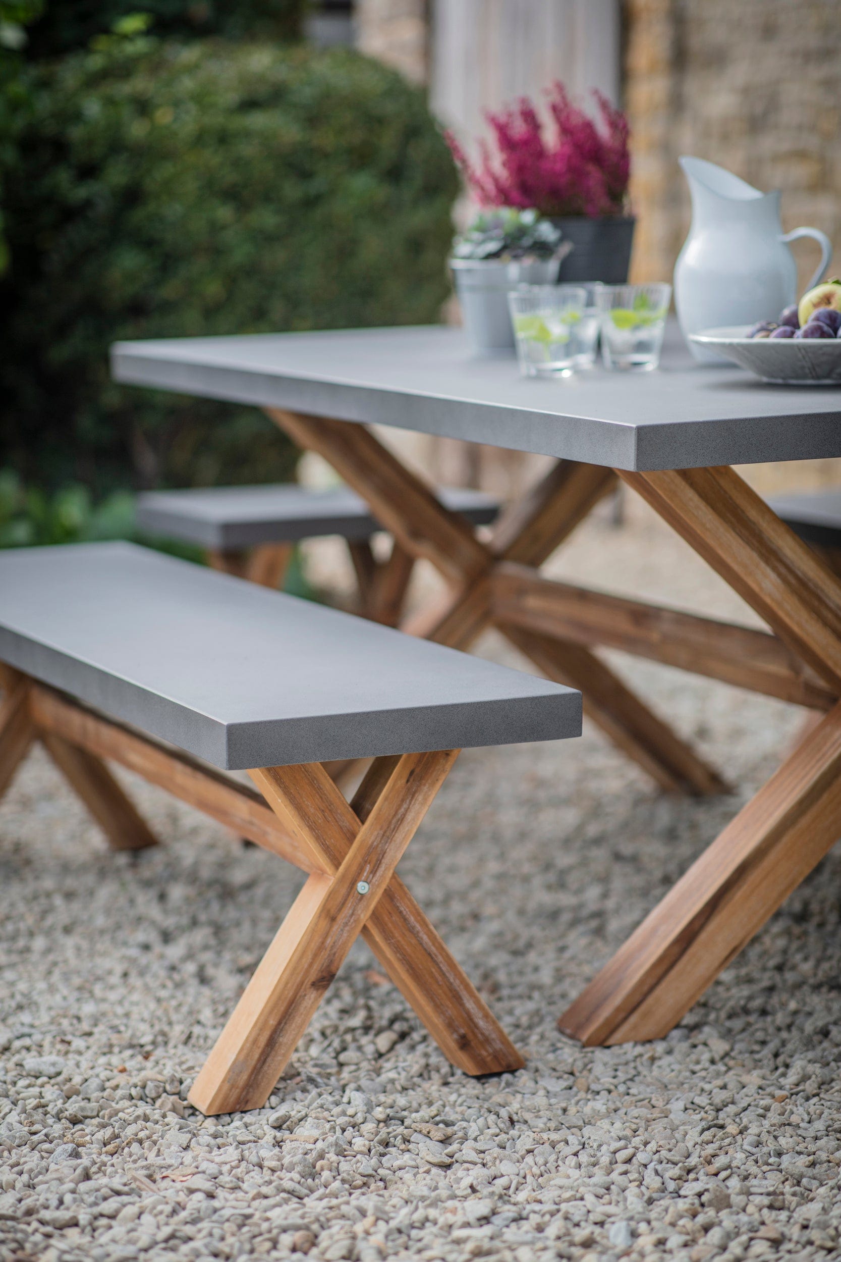 Made to match our stylishly contemporary Burford Dining Tables, the Burford Bench works equally well paired with our large table or as a standalone statement piece situated anywhere around the garden or home, where it looks particularly great running down the length of a hallway. When not being perched on, it doubles up as an attractive home for plant pots, decorative lanterns or coffee table books. Crafted from robust Polystone, the bench is weatherproof enough to stay outdoors all year round, though a protective covering will keep it looking its best in the face of wintry weather.