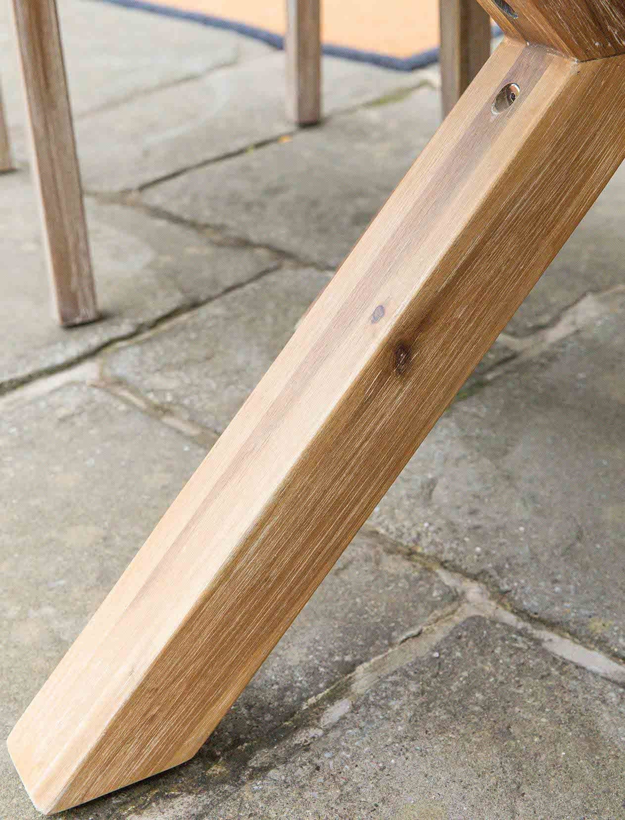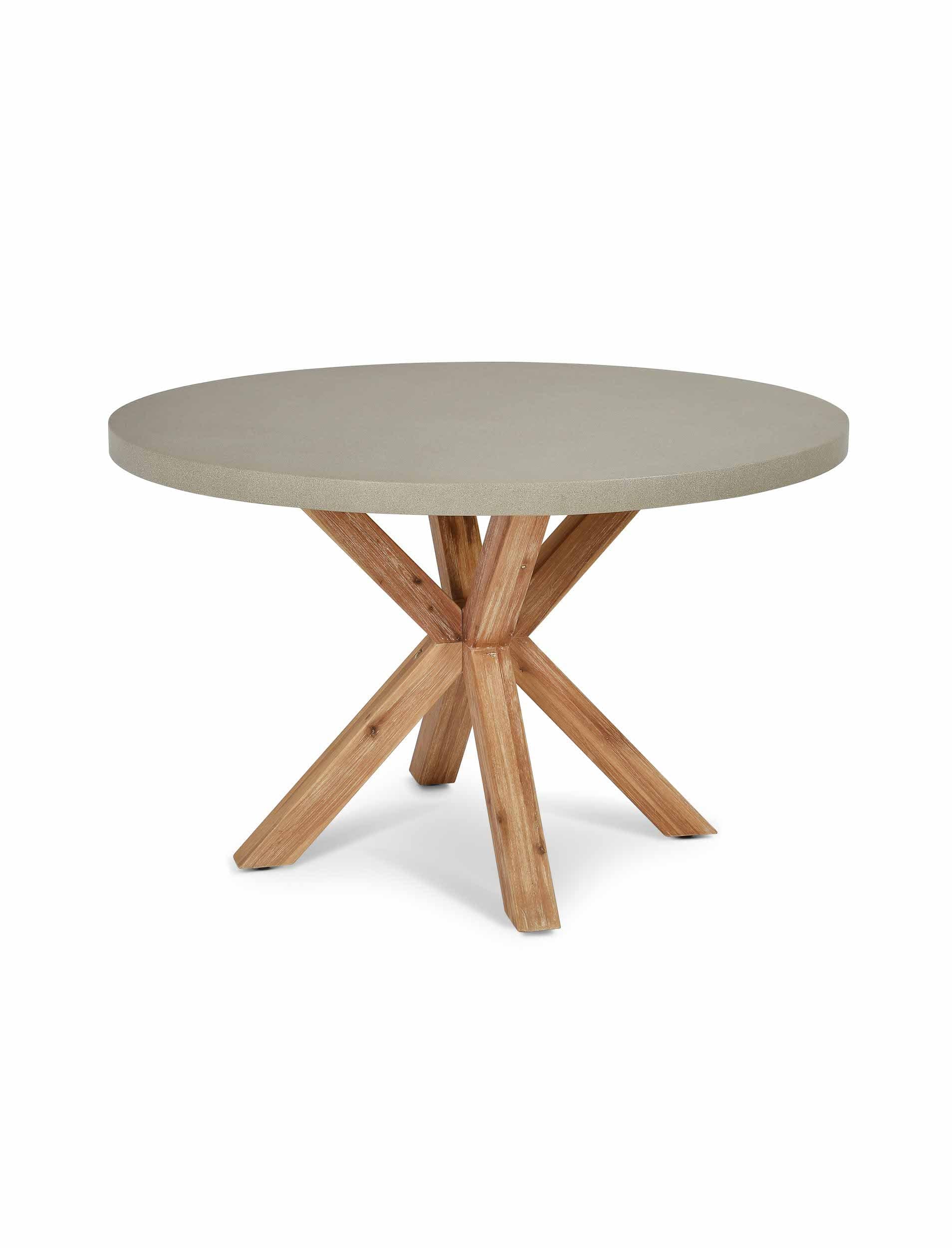 The perfect garden table to gather around, the stylish Burford Round Dining Table is a contemporary choice for patio parties and barbecues. It also works beautifully as an indoor dining table. Crafted from a robust mix of solid acacia wood legs and polystone top, it features the same distinctive criss-cross leg design as the other tables in our popular Buford Range. The 120cm Burford Round Dining Table has plenty of room for all the family and pairs perfectly with our solid acacia Chilford Dining Chairs. A robust, weatherproof build means it can happily sit outdoors all year round, though we do recommend a protective covering in the depths of winter.