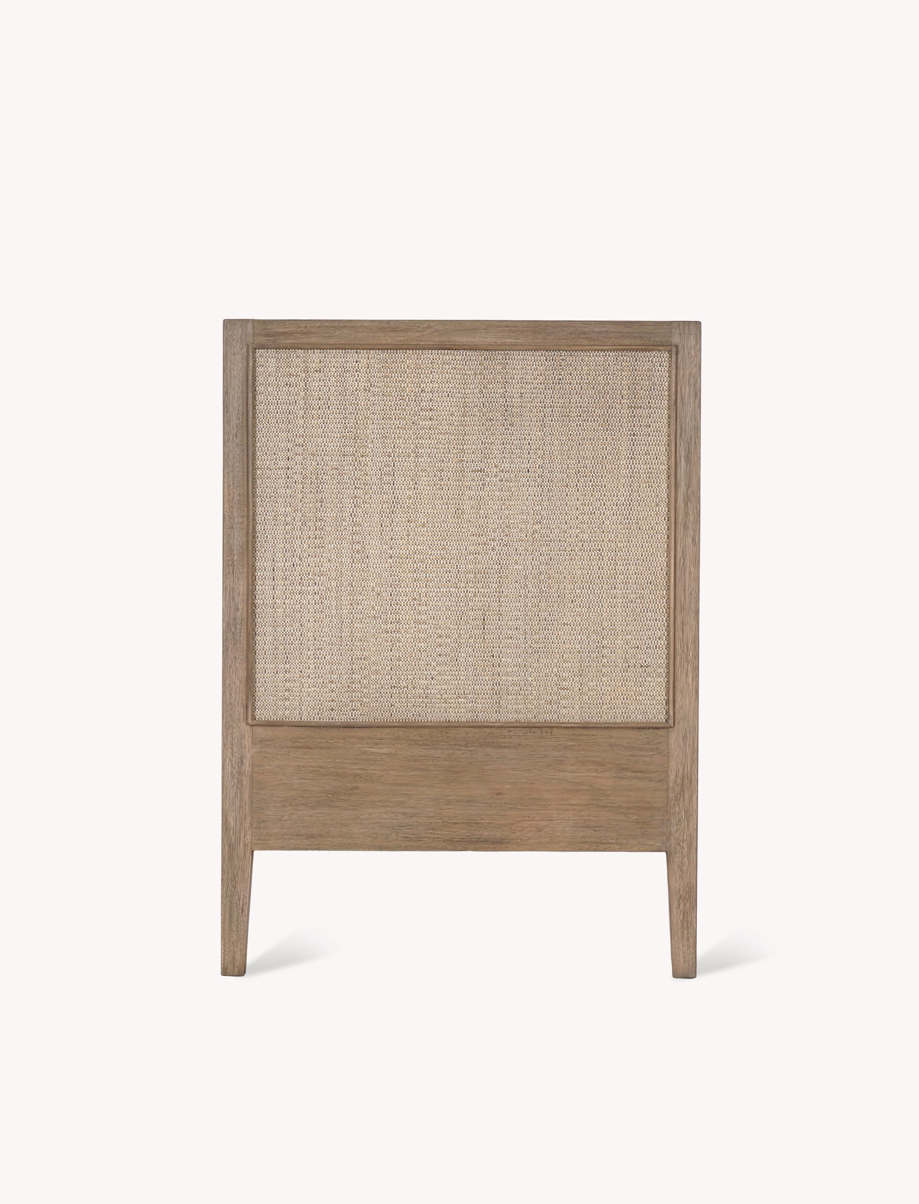 Whether it's a twin guest bedroom or a child's room, give a single bed the makeover it deserves with our Chesterton Headboard. This beautiful piece has been handcrafted in Indonesia using Bayur wood. It's finished with a warm Mindi wood veneer that lets the natural grain of the wood take centre stage, while raised wicker rattan adds to the texture and visual interest. This headboard can be mounted on the wall using the fixing on the back or just pushed up against the wall. Complete the bedroom transformation with other furniture from our Chesterton range, such as our Chesterton Chest of Drawers and Chesterton Bedside Table.