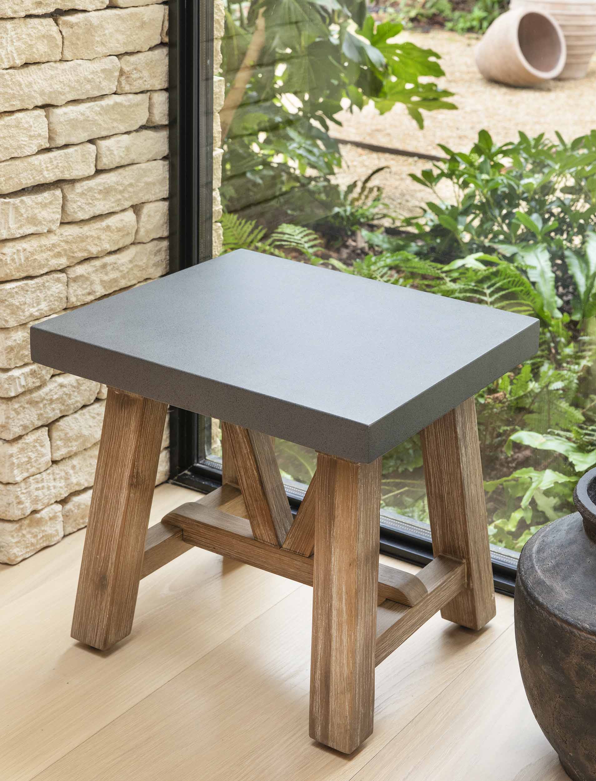 Gathering around the dining table for a feast or sharing stories over the firepit, our Chilford Stool is a stylish choice for indoor or outdoor gatherings. Crafted from Grey Slate polystone with a solid acacia frame, it's made to match our Chilford Dining Table and helps create a more relaxed table setting when combined with our Chilford Benches. Alternatively, place several stools around a chiminea or use to create an inviting sitting space anywhere around the home and garden. The Chilford Stool is robust and weatherproof enough to leave outdoors throughout the year, but we recommend a protective covering to keep it in great condition in the depths of winter.