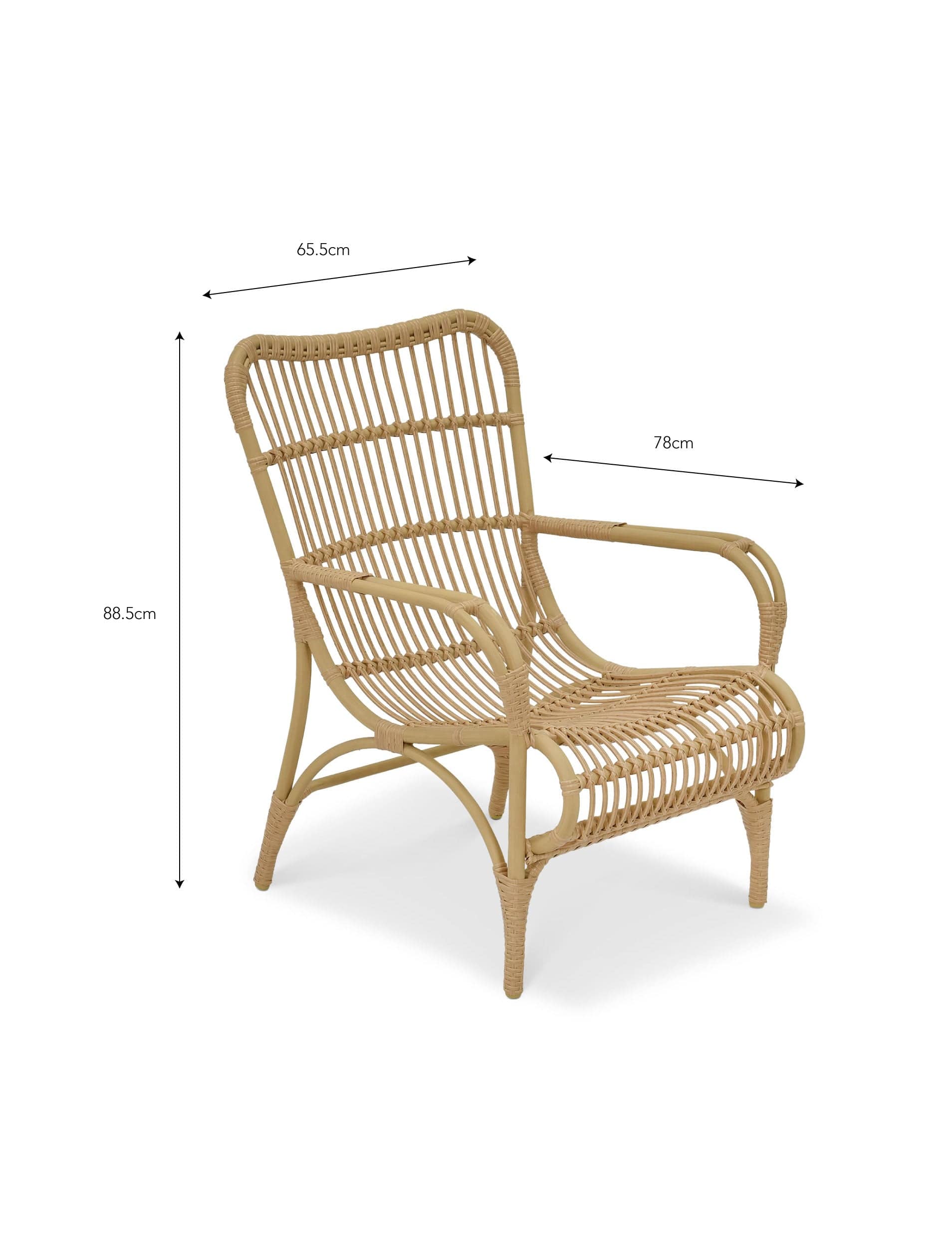 Measuring H88.5 x W65.5 x D78cm, this chair is the perfect size for any outdoor area. At House of Isabella, we pride ourselves on providing luxurious furniture and interiors with free delivery in the UK. Don't wait any longer, upgrade your outdoor space with the Corston Lounge Chair Natural today.