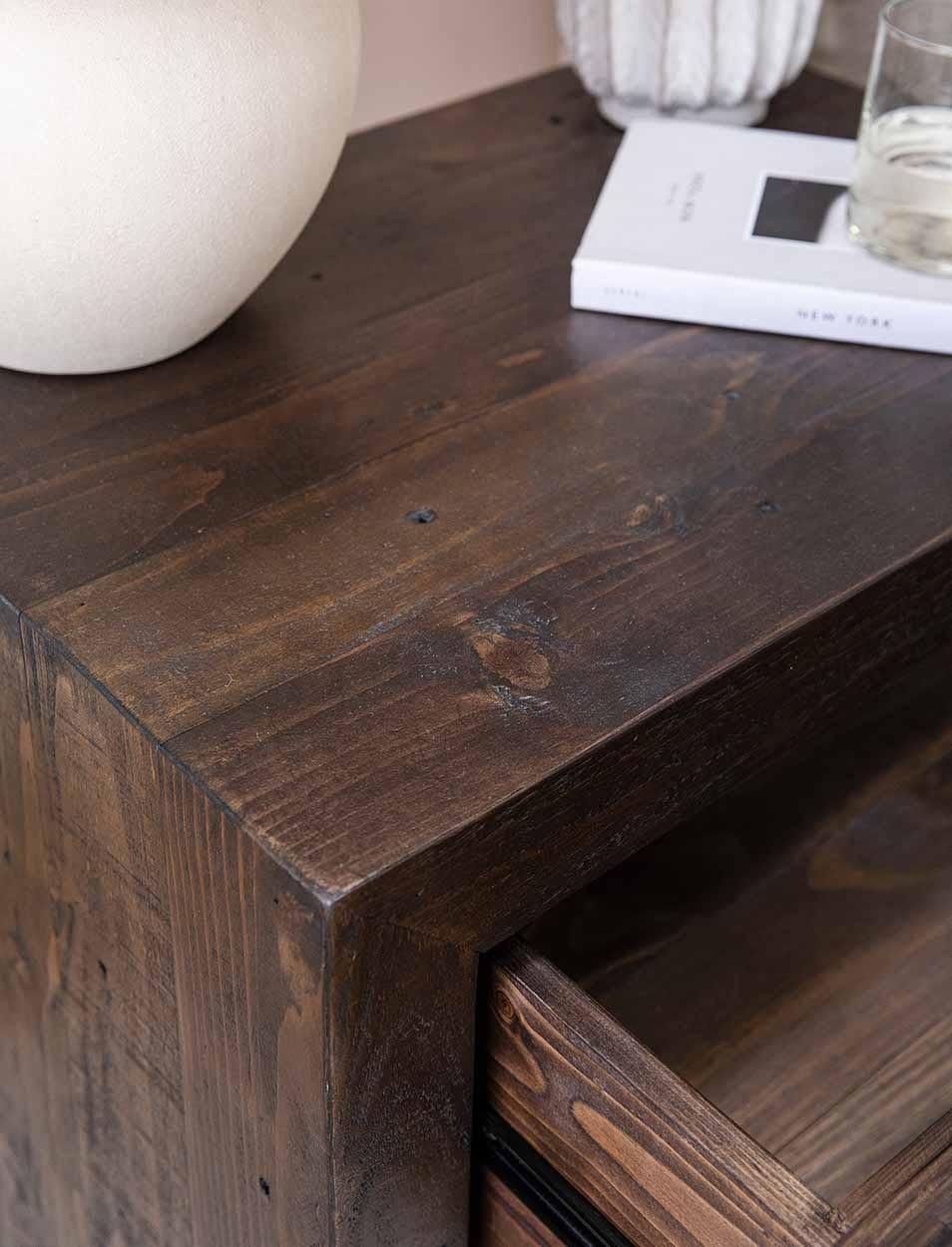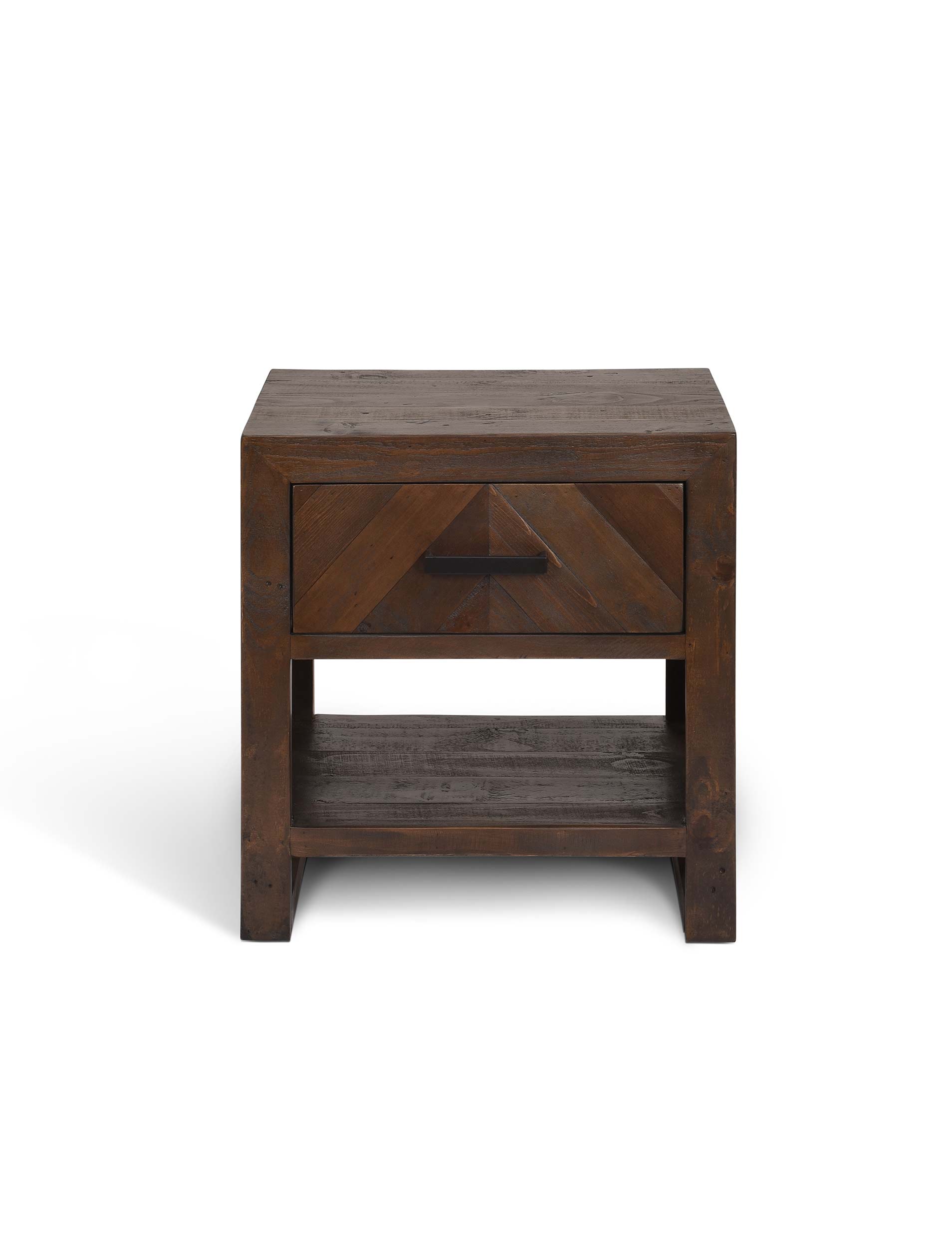 Our Fawley Chevron Bedside Table features the same striking chevron design as the matching Fawley Chevron Bed, making it the ideal companion. Perfect for displaying a bedside lamp, books and other bedtime essentials, this reclaimed pine bedside table in Antique Brown has a spacious storage drawer as well as a lower shelf. Complete the bedroom transformation into a stylish place to sleep with other complementing furniture from our fabulous Fawley range.