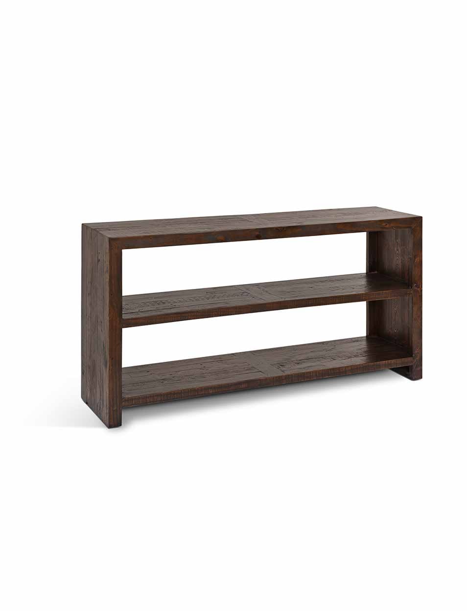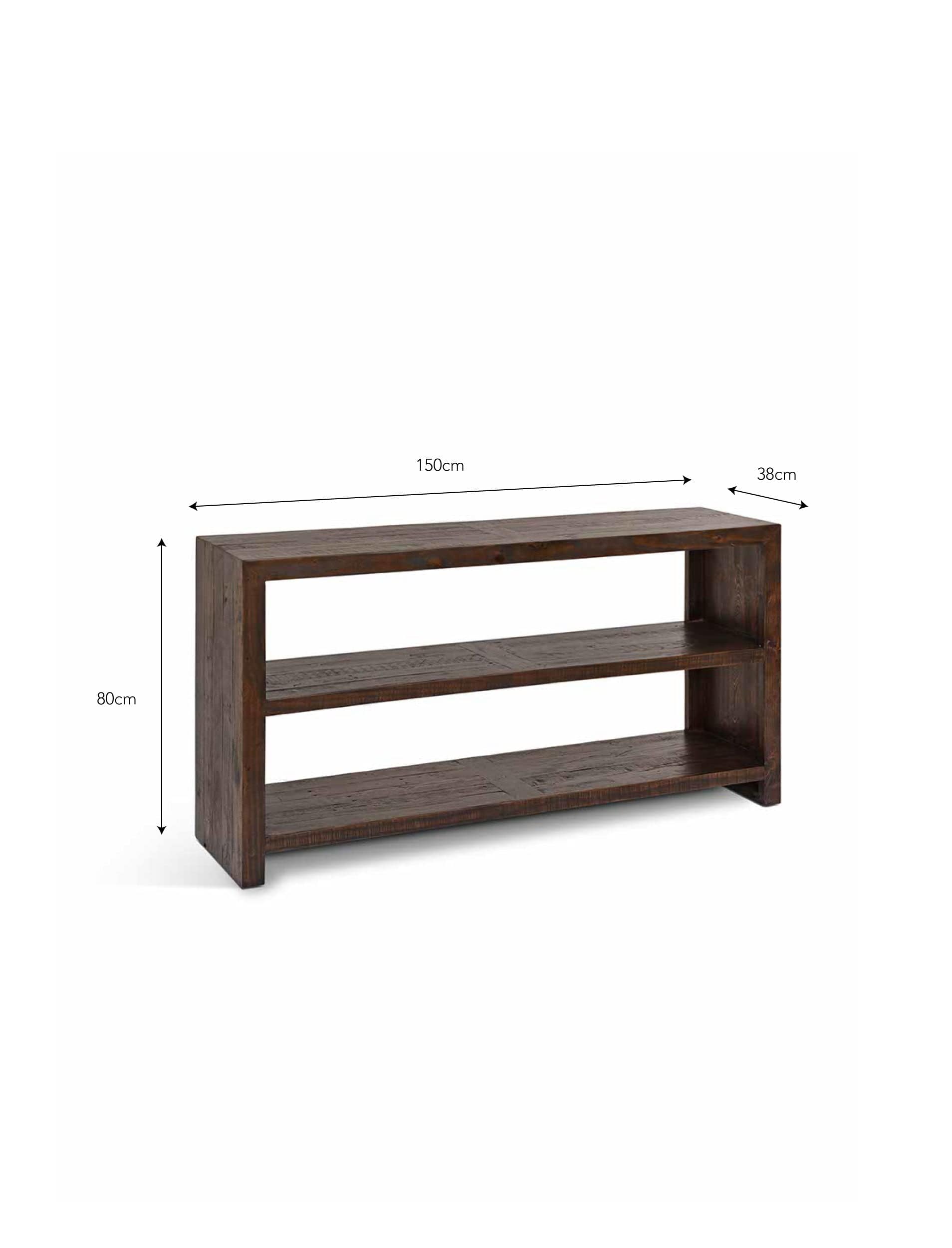 Style an entrance hall the sophisticated way with our Fawley Console Table. This minimalist hallway table is perfect for displaying a vase of flowers or eye-catching lamp, with plenty of room for depositing the day's post and keys when people get home. Two lower shelves provide handy storage for shoes, bags and other things. Striking in its simplicity, the Fawley Console Table is crafted from reclaimed pine in Antique Brown, and also works well in a bedroom or living room. It comes with an anti-tip kit to keep it safely upright, and pairs perfectly with our other Fawley furniture in Antique Brown.