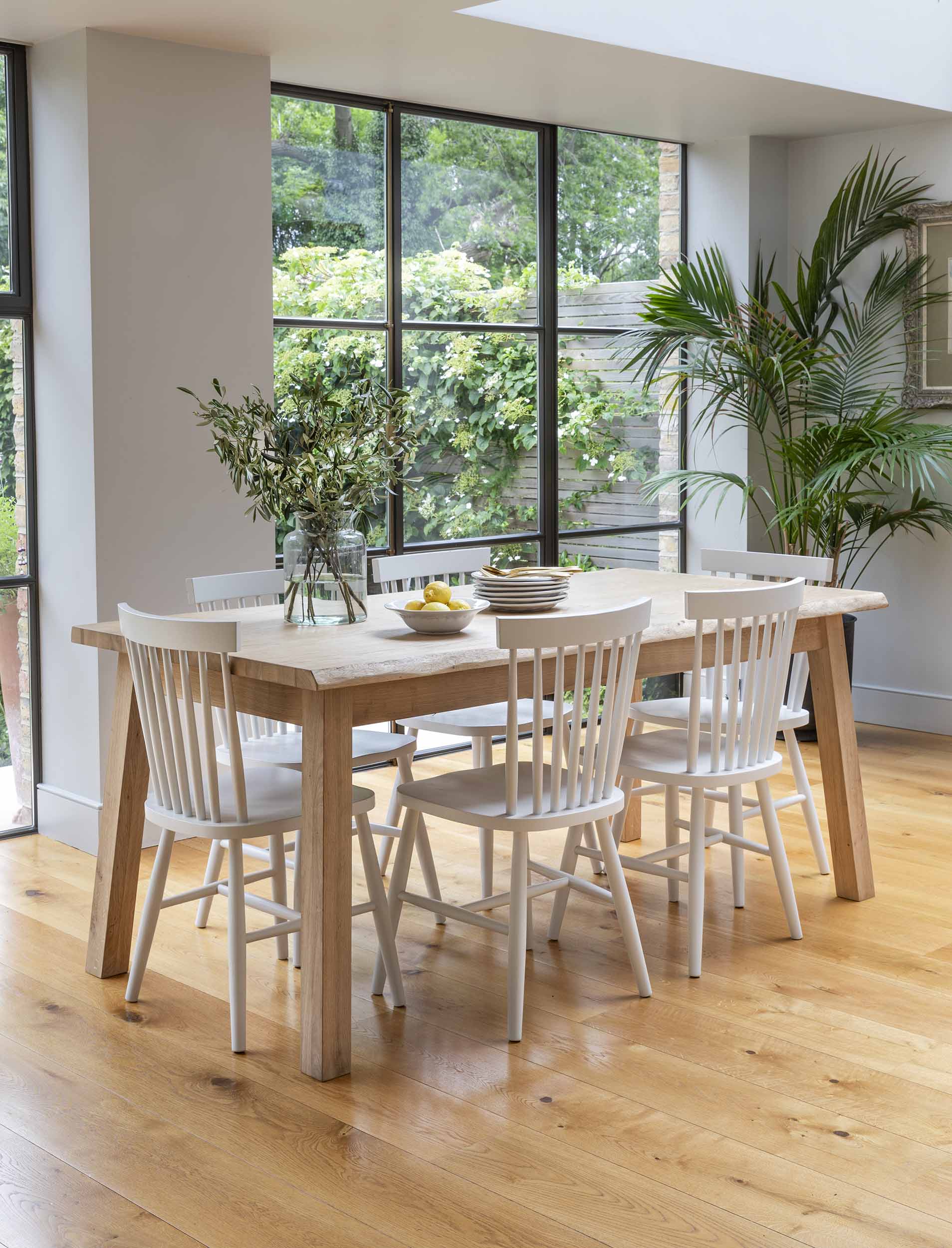 Stylish in its simplicity, our Hambledon Oak Dining Table is one you'll gather around with friends and family for years to come. Crafted from solid oak, it's a piece that goes well with both classic and modern interior design schemes, while being sturdy enough to stand the test of time in a busy family home. The neat, unfussy design of the Hambledon Oak Dining Table makes it the perfect table for a farmhouse kitchen - yet it's also smart enough for dinner parties in the dining room. Its versatile design means you can take your pick from our variety of dining chairs to create the look you want. For maximum style points, team with matching oak furniture from our Hambledon range.