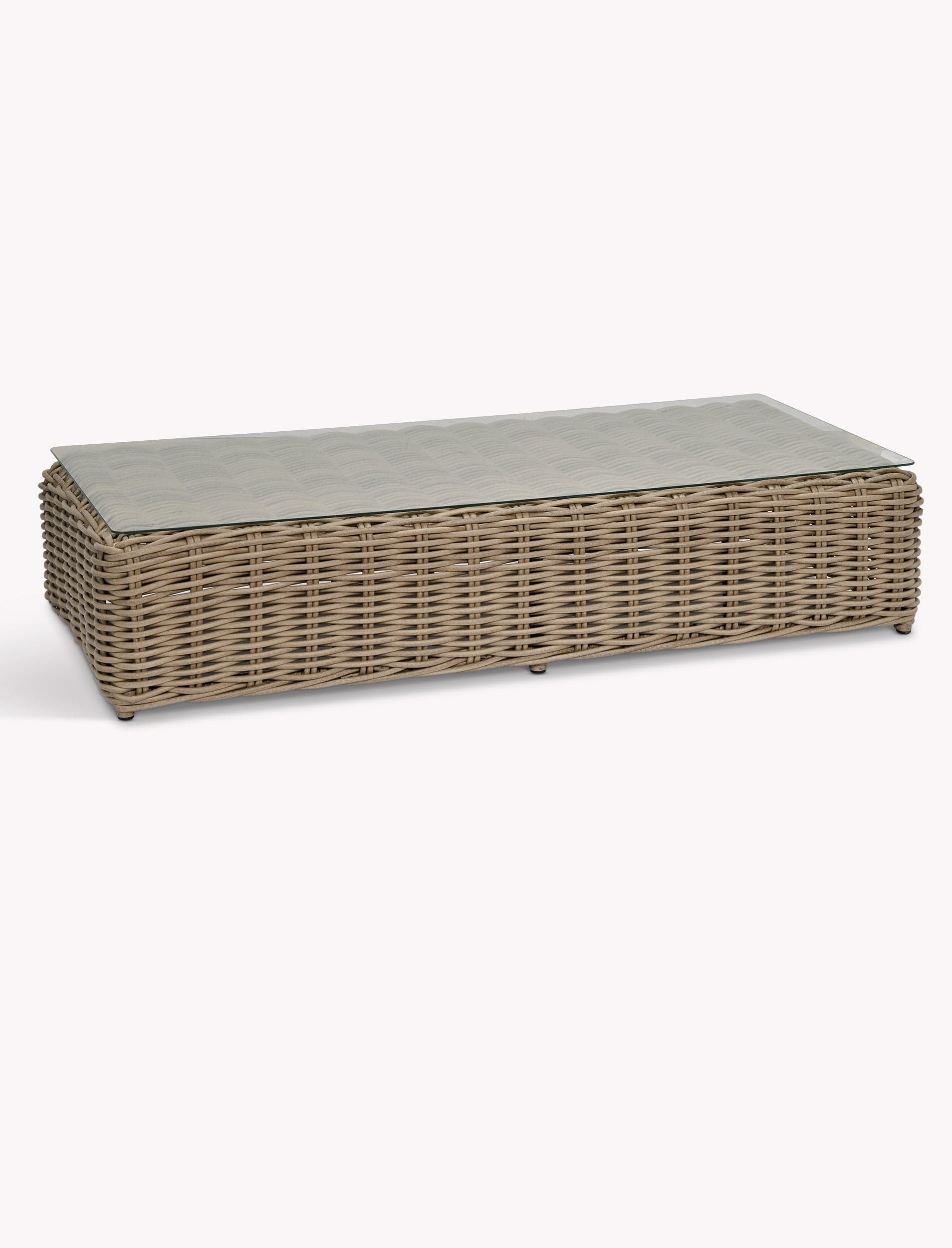 Create a stylish and comfortable outdoor living space with our Harting Coffee Table. Woven from durable PE rattan, this piece is built to last and has a stone-coloured weave with the appearance of natural rattan, complete with characterful colour variations. It's topped with tempered glass to provide a perfectly flat surface for placing drinks and snacks on when entertaining or relaxing outdoors. This coffee table is weatherproof, and UV and mould-resistant, so it's built for a life in the garden. To prolong its life, we'd recommend protecting it from bad weather with the matching, made-to-fit Harting Coffee Table Cover.