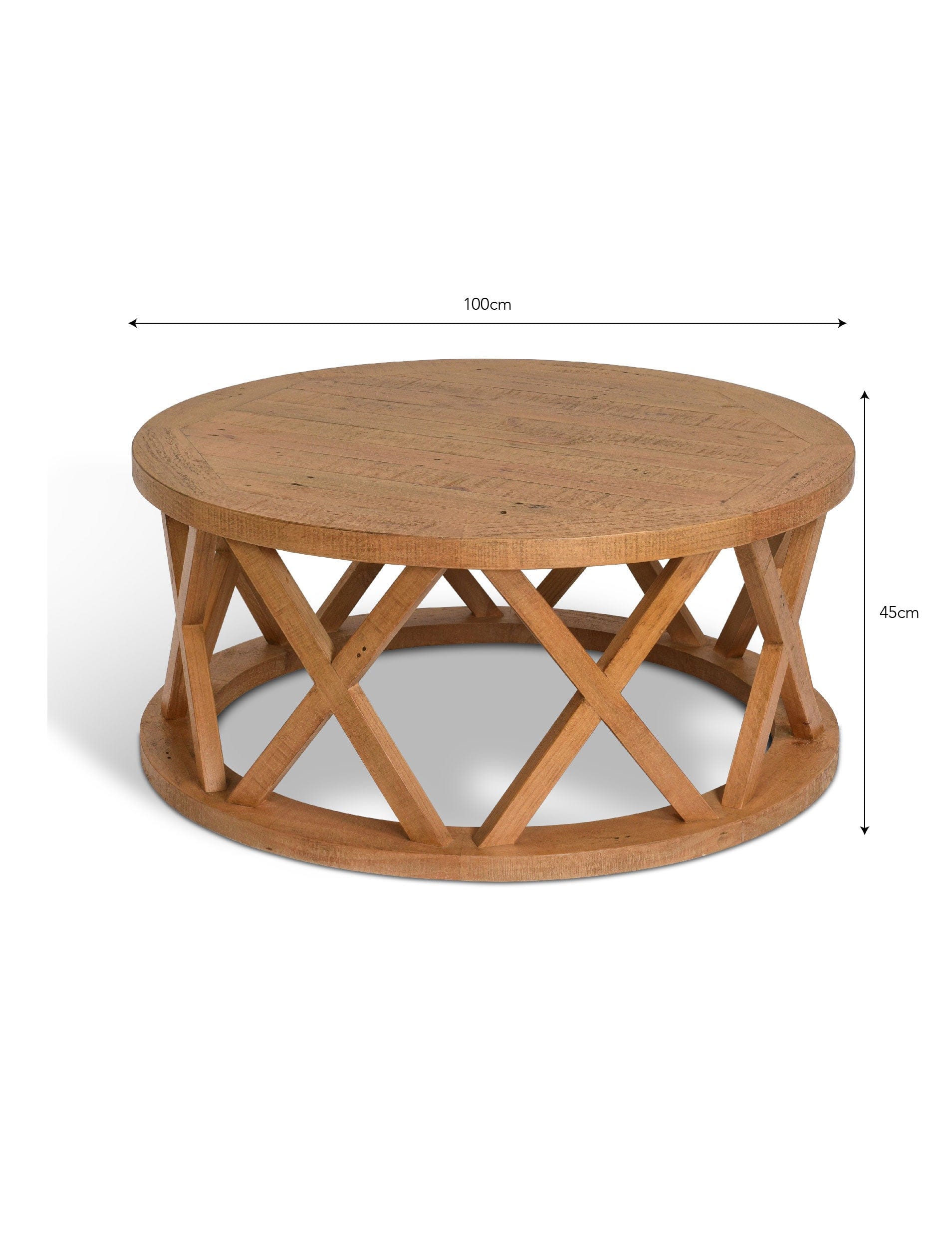 An eye-catching criss-cross design makes our Oxhill Coffee Table the perfect statement piece for a living room. With plenty of room for styling with favourite coffee table books, candles and other decorative finishing touches, this round coffee table is made from reclaimed pine with a light stain and makes a great alternative to a traditional square table. Complete the look with a large rug to put it on and a console table from our Oxhill range to match it with.