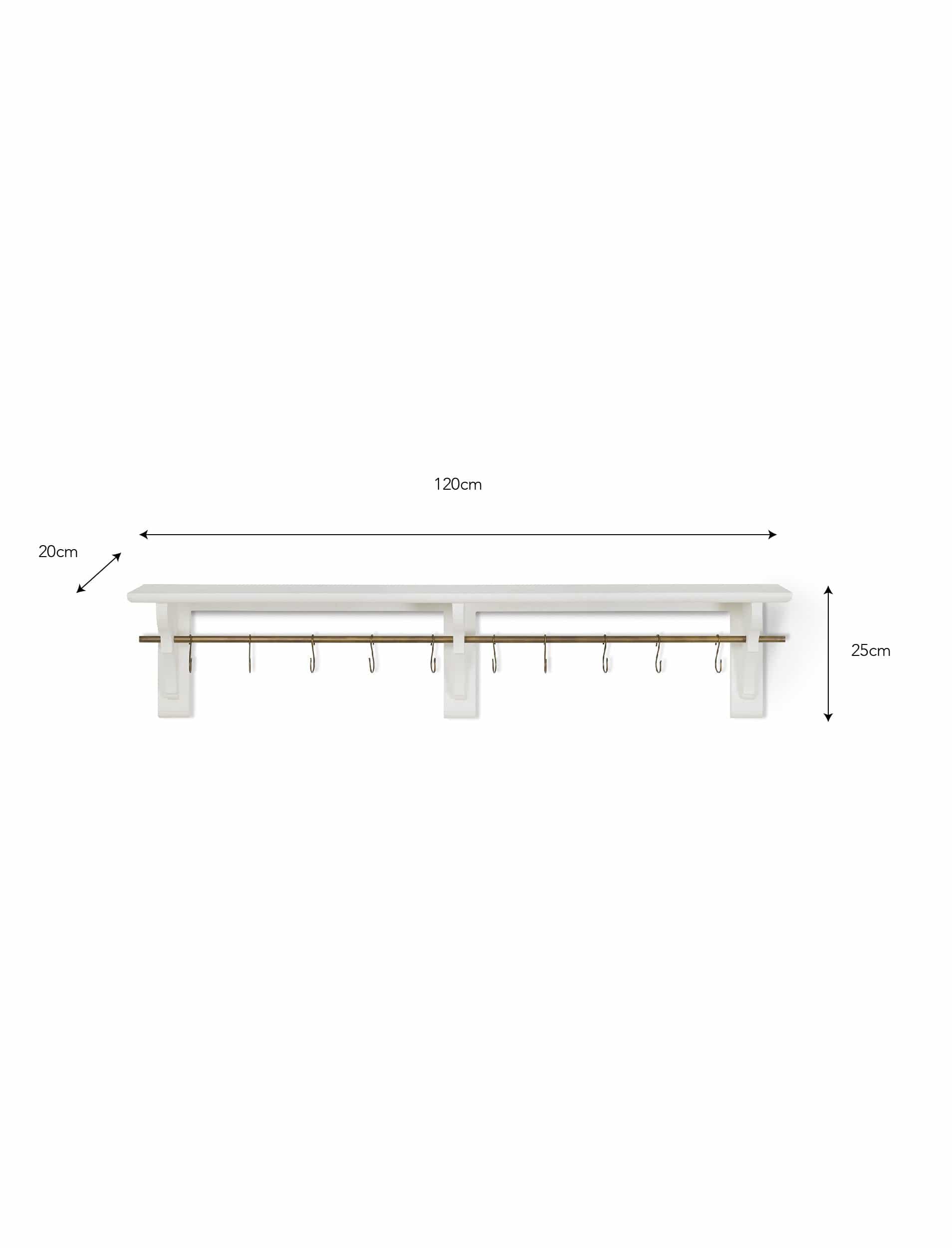 Practical and stylish, our Walcote Shelf is available in three colours and three sizes. This large version in lily white has an antique brass hanging rail with ten hooks designed to hold utensils, tea towels and other bits and bobs. The shelf above offers plenty of space to line up storage jars, cookbooks and house plants. Complete the country kitchen look with matching furniture from our Walcote collection.