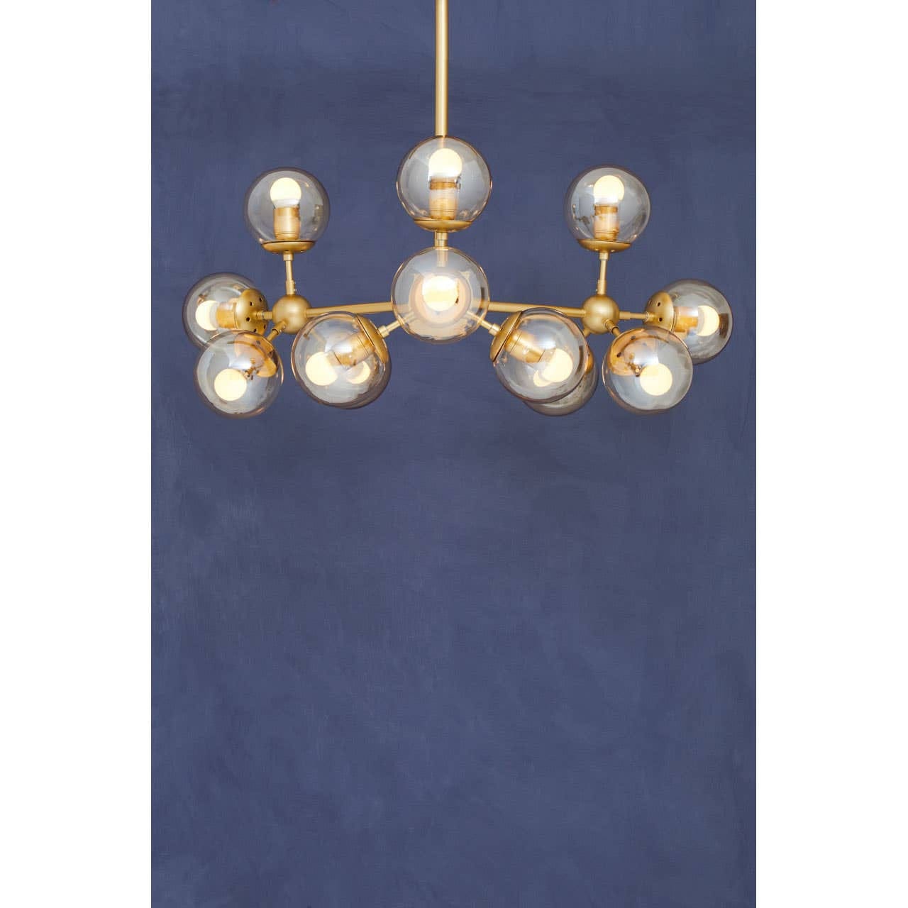Featuring a molecular multi heads design, this pendant fixture has twelve bubble-shaped bulbs connected to sleek gold finish framing. The brown tint glass with edison bulbs will create an incandescent glow and visual interest.