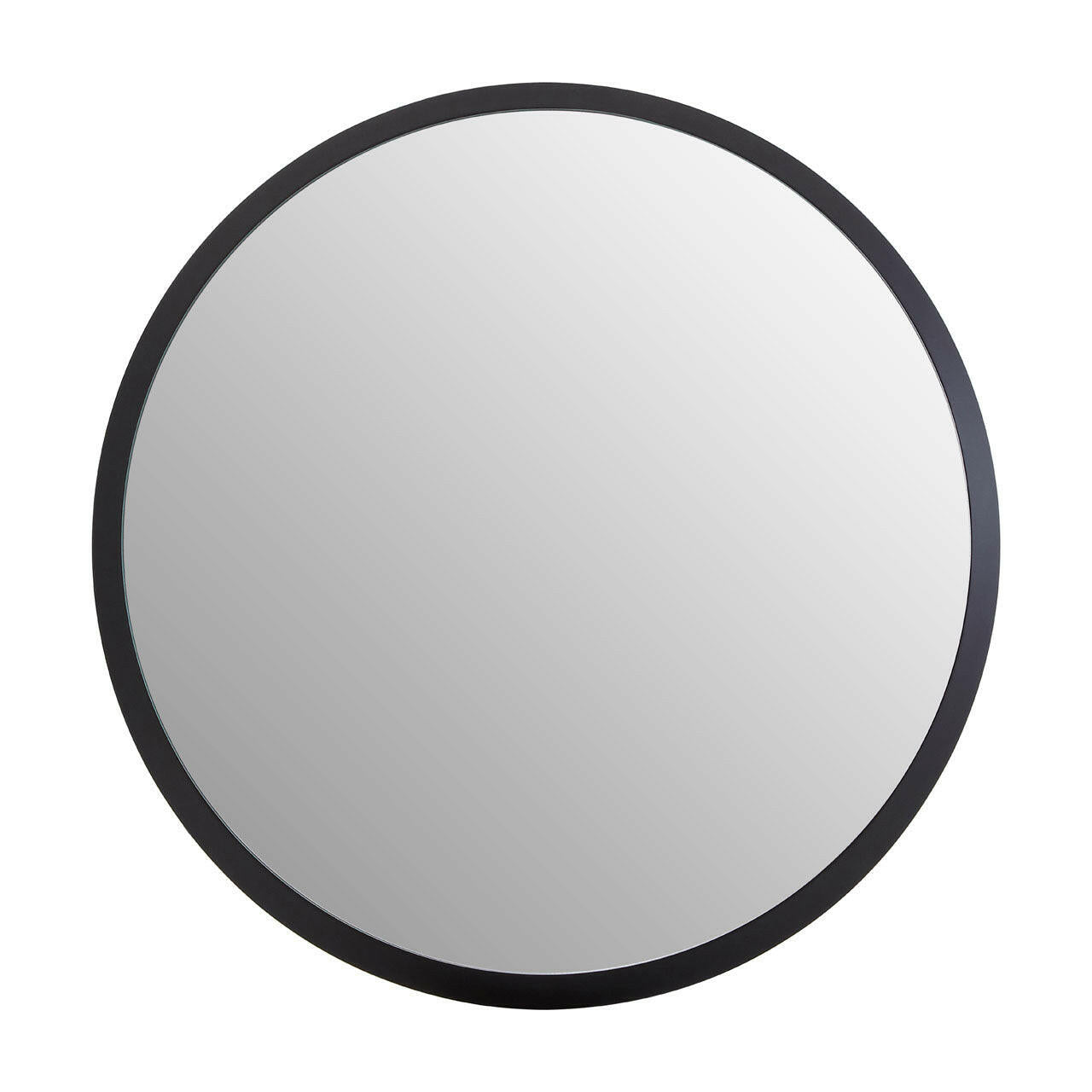Its round frame is finished in black to give it a sleek and contemporary look. The reflective surface is set level with the frame, contributing to the mirror's smooth, uninterrupted aesthetic. Its reflective plane attracts light, making this wall mirror capable of increasing the sense of space in a room.
