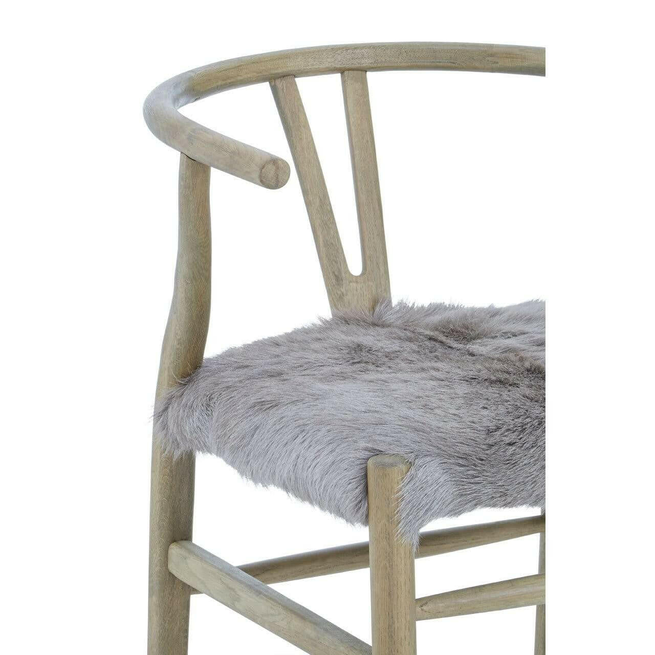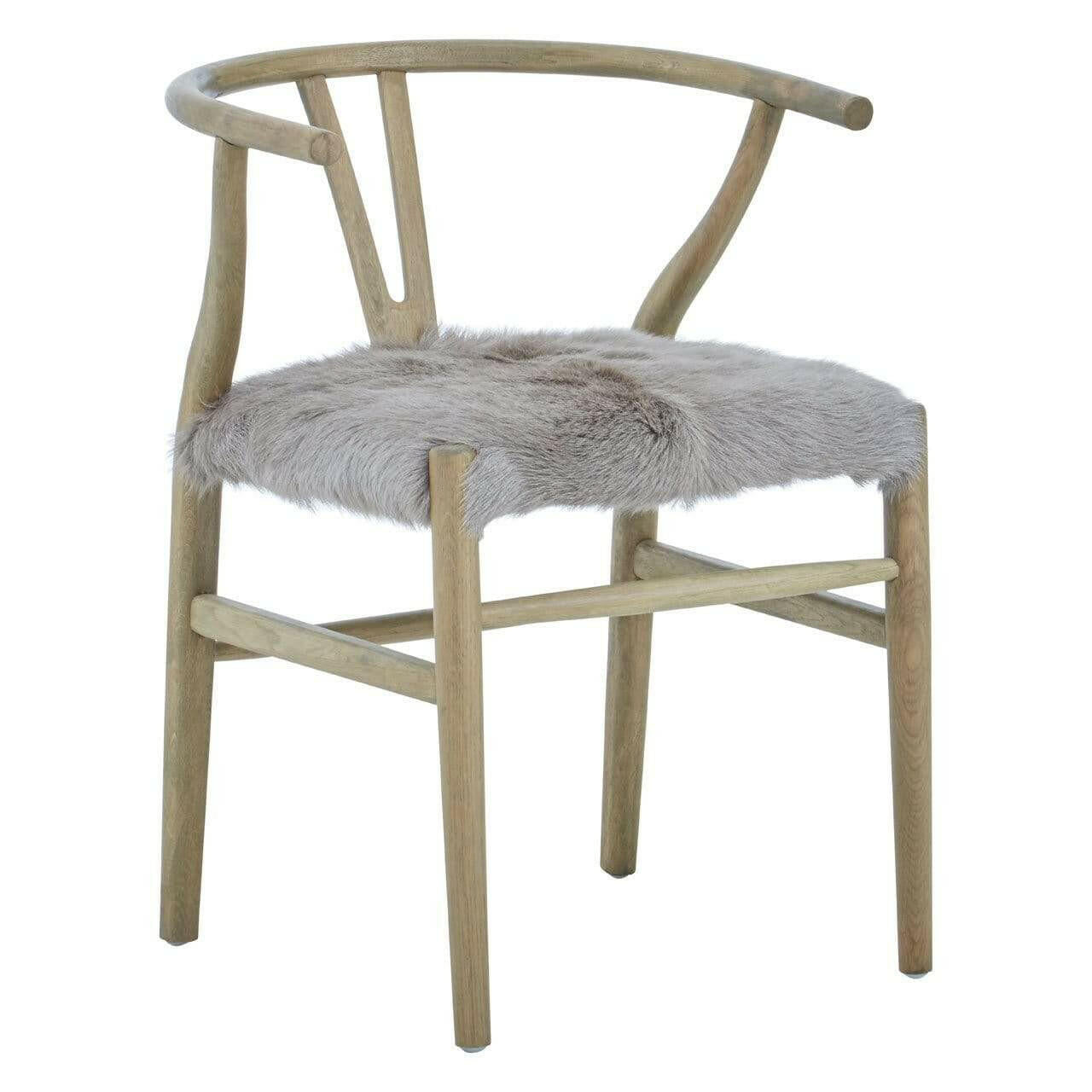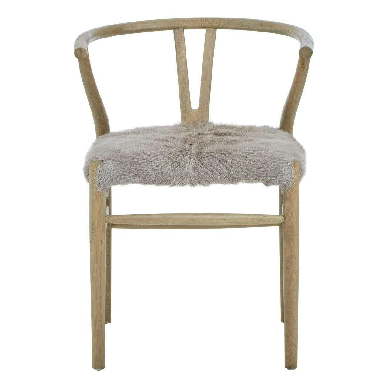 The chair's frame is crafted from solid American oak wood. Its light, natural colour allows the natural grain pattern to take centre stage. A thick pile of faux fur dresses the seat to produce a comfortable and tactile finish.