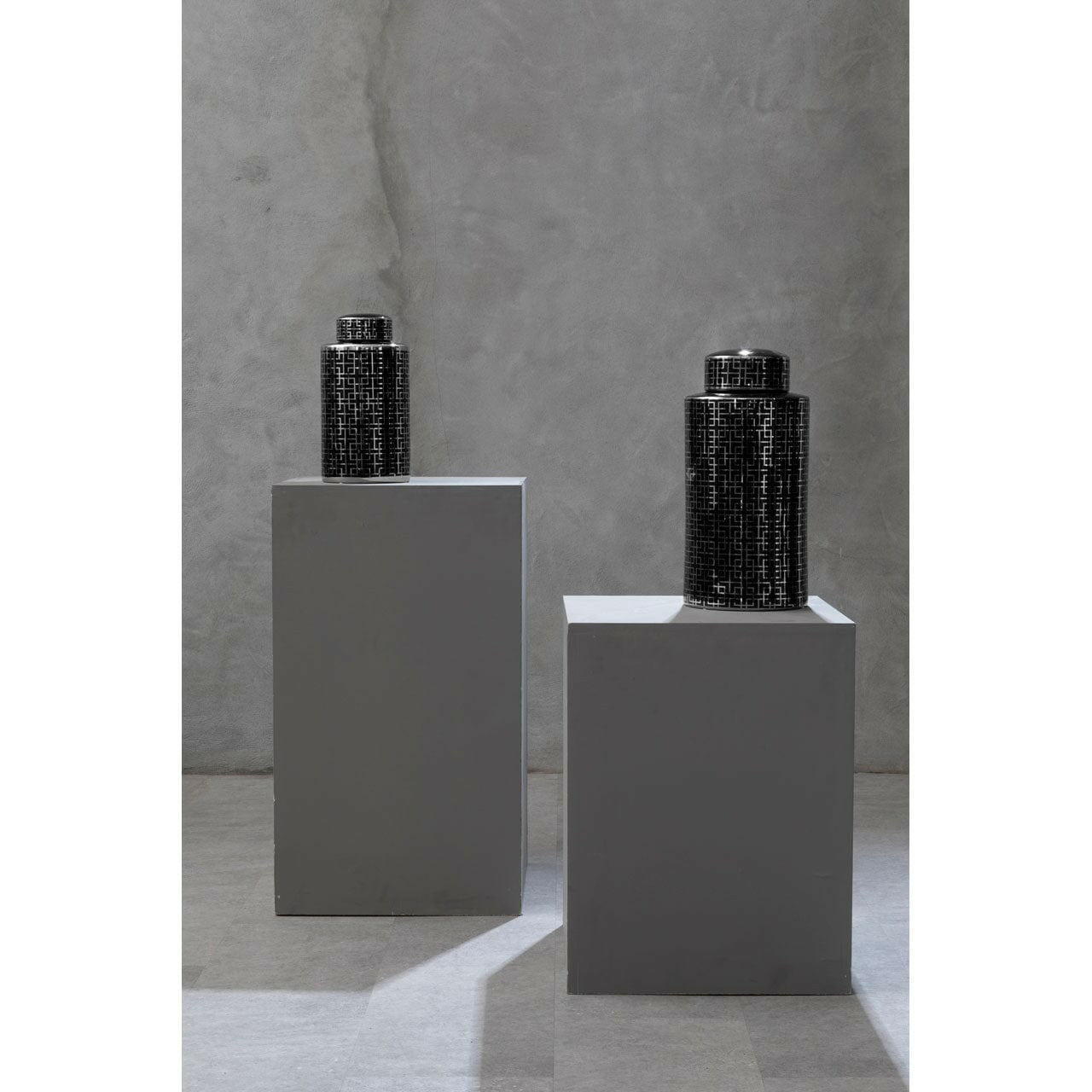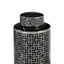 Introducing the Daria Large Ceramic Jar, a stunning addition to any home decor. This glossy black vase is adorned with a silver square pattern, reminiscent of the glamour and opulence of art deco design. The jar also features a removable matching lid, adding versatility to its elegant design.