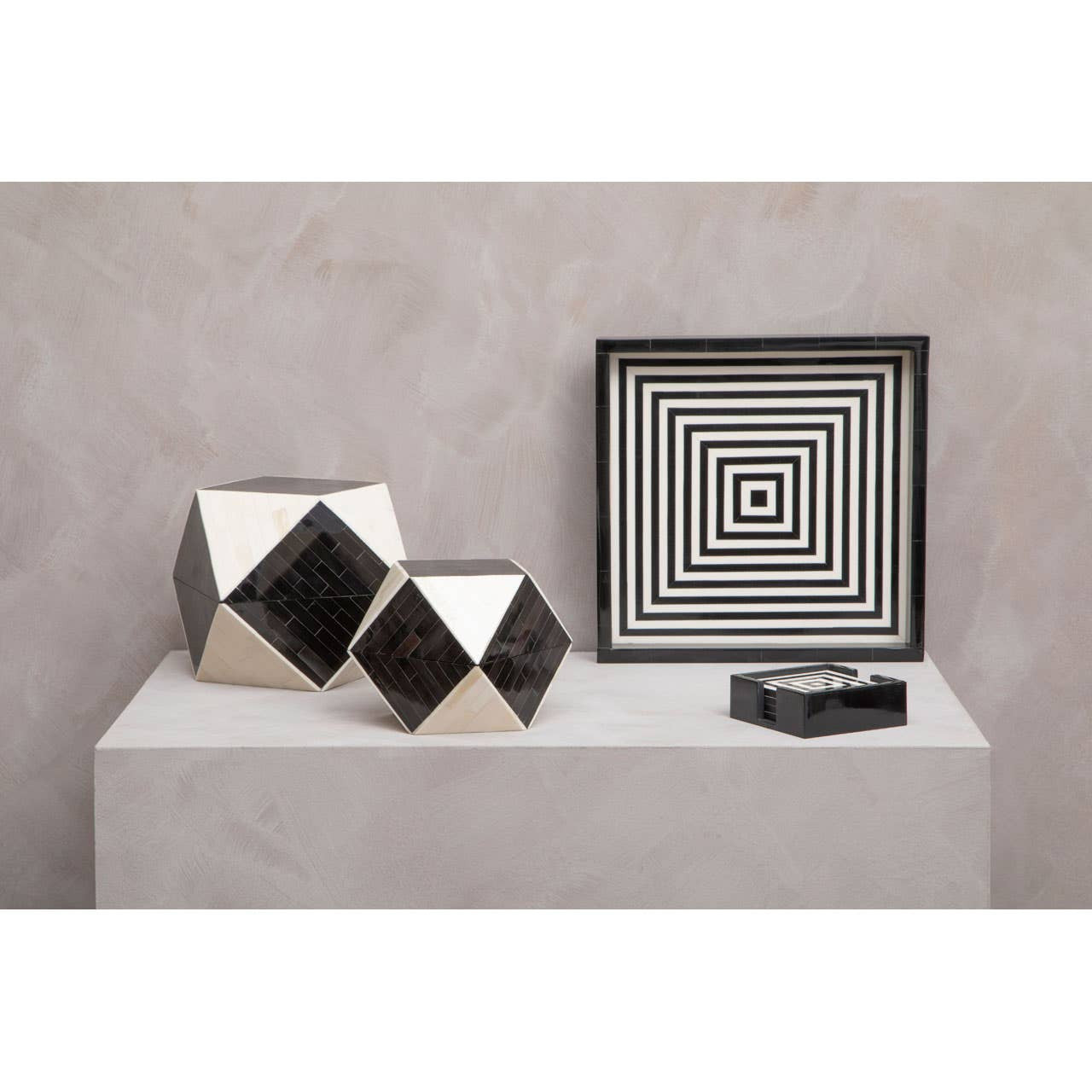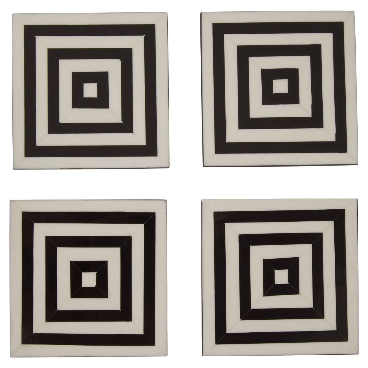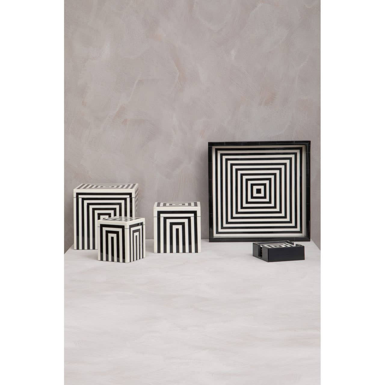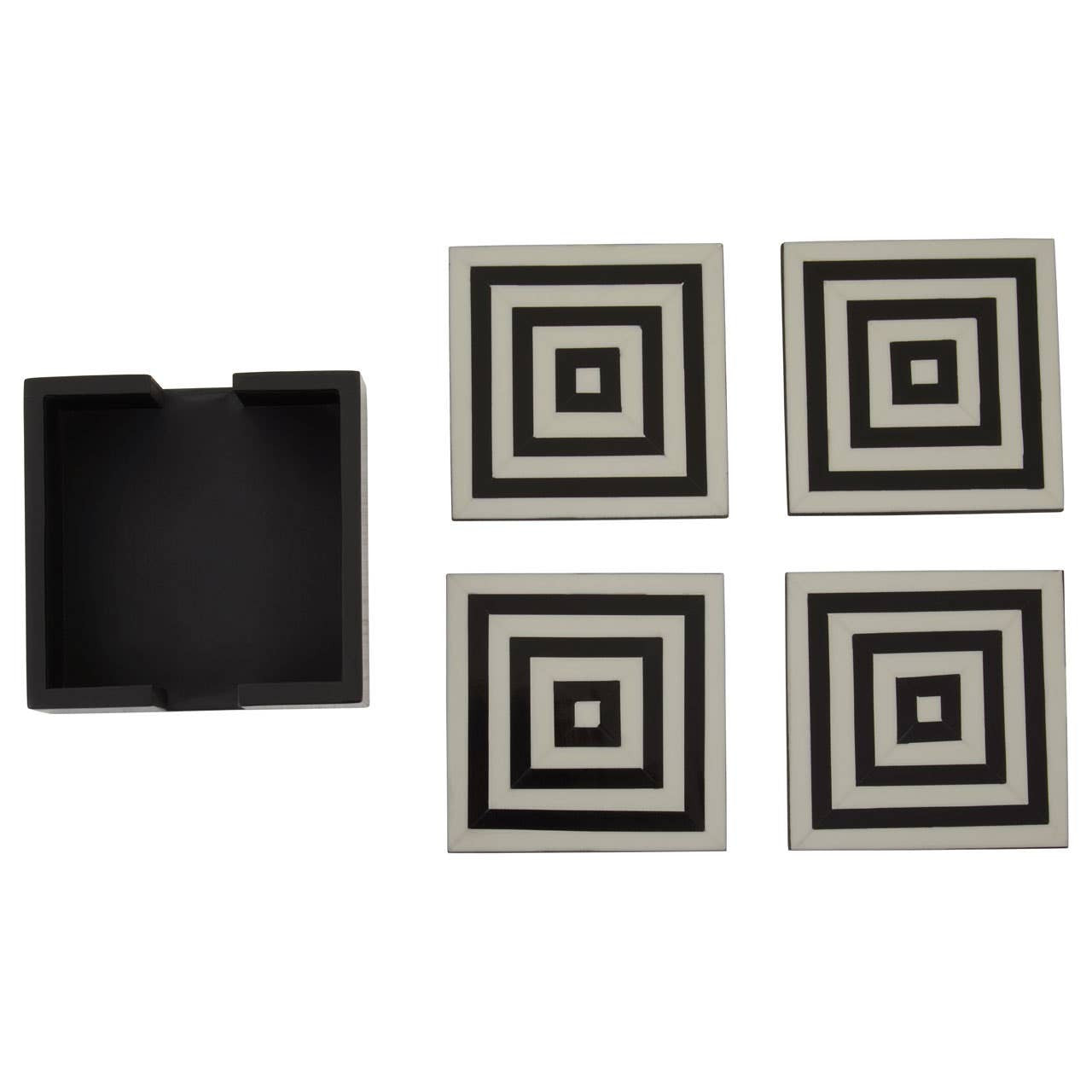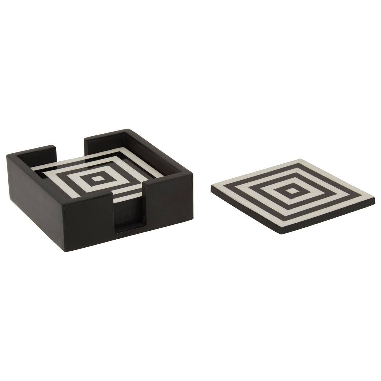 Donato Set of 4 Black and White Stripe Coasters with Holder