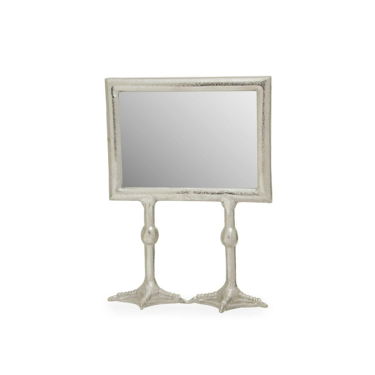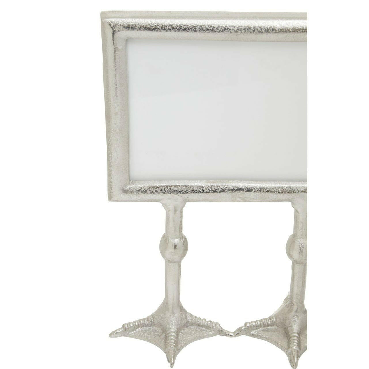 The Duck Feet Landscape Photo Frame from House of Isabella is a playful and whimsical addition to any home decor. The frame features a landscape shape in a reflective silver finish with hints of distressed effect, adding a touch of charm to your space. Measuring H28 x W20 x D9cm, this freestanding frame is perfect for displaying your favorite landscape photos. Made from 50% glass and 50% aluminium, it is both durable and stylish. To keep it looking its best, simply wipe clean with a dry soft cloth and avoid using abrasive cleaners. Add a touch of humor to your home with the Duck Feet Landscape Photo Frame.