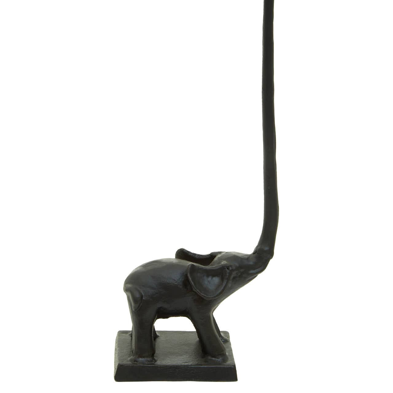 This toilet roll holder possesses both utility and visual appeal with a freestanding black elephant figure on a rectangular shaped base. It has a sturdy metal build and is suitable for safari themed decors.