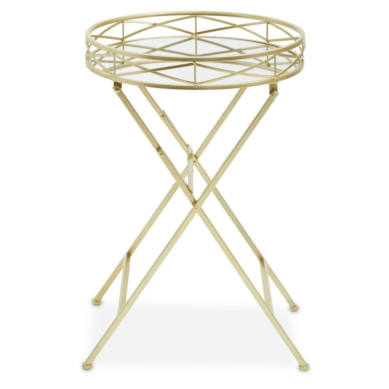 The Jolie round tray table is simple and adds a modern feel to your decor. A mirrored tray sits within a luxe gold frame, supported by gold crossed legs.