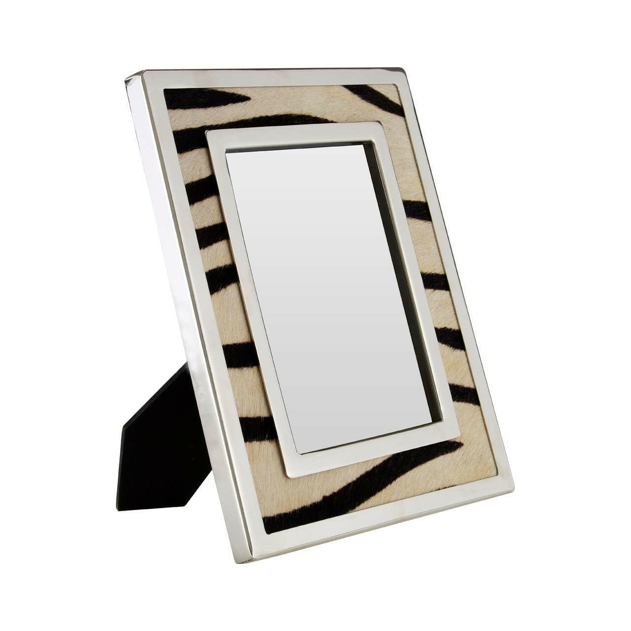 Display your favourite photograph in the Kensington 5in x 7in photo frame from our 55 South collection, featuring a striking zebra design and steel frame. The durable frame has an MDF back and stand to allow you to show the photo landscape or portrait. A steel frame is accentuated further by the genuine leather, with zebra stripe design, that will help to bring focus to your favourite captured moment. Ideal for sitting on your mantle, table, shelf or window sill, the Kensington photo frame will complement a contemporary setting.