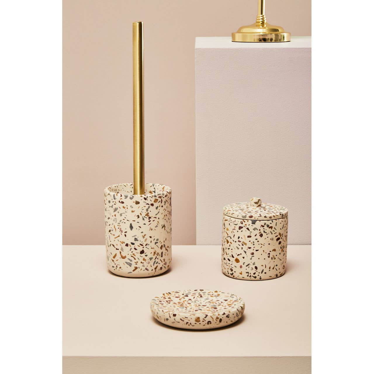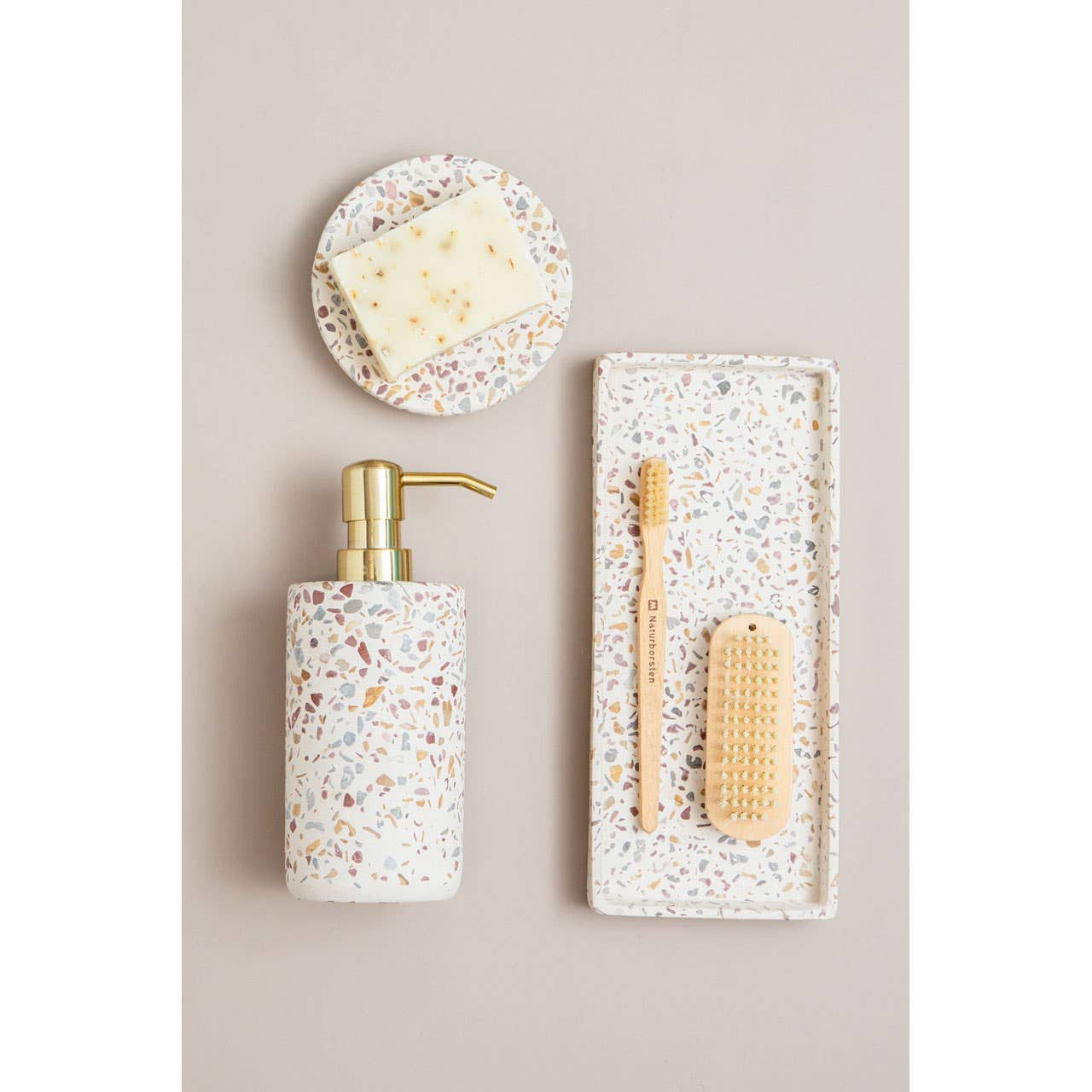 The Mozie soap dish has multicoloured specks which give it a vibrant appearance. The oval design includes a gently indented centre to keep soap securely in place while adding a sophisticated visual accent to the bathroom shelf or countertop.