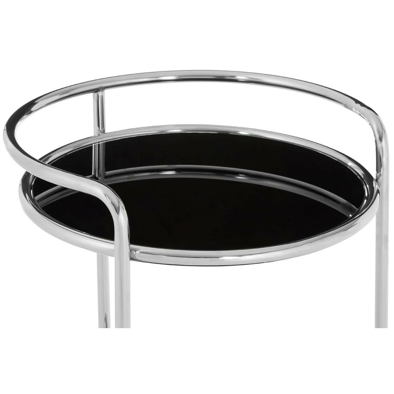 Created from smooth steel, the Novo trolley has two tiers, both round in shape. Supported by the minimal frame, the circular shelves are created from tempered glass and hacve a sleek black finish, combining with the silver frame for a rich, luxurious colour palette. Small black wheels allow the treolly to be repositioned with ease.
