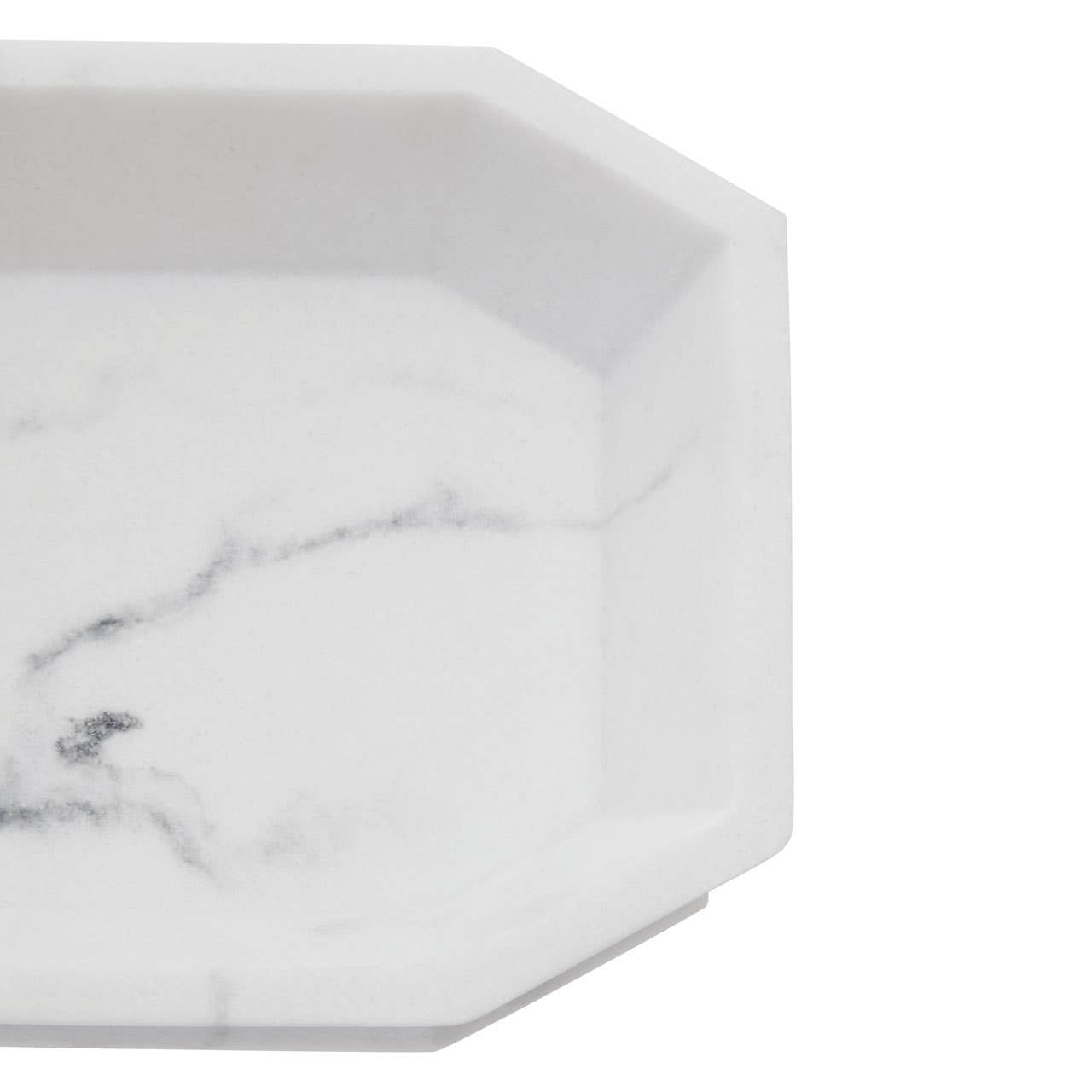 Made from a single piece of polyresin, this soap dish has a depth in its centre with bevelled sides and bottom which keep the soap securely in place. The dish has a soft grey base colour and a muted marble pattern for a classical and sophiticated look. Style it with the Riviera lotion dispenser or tumbler for coordination.