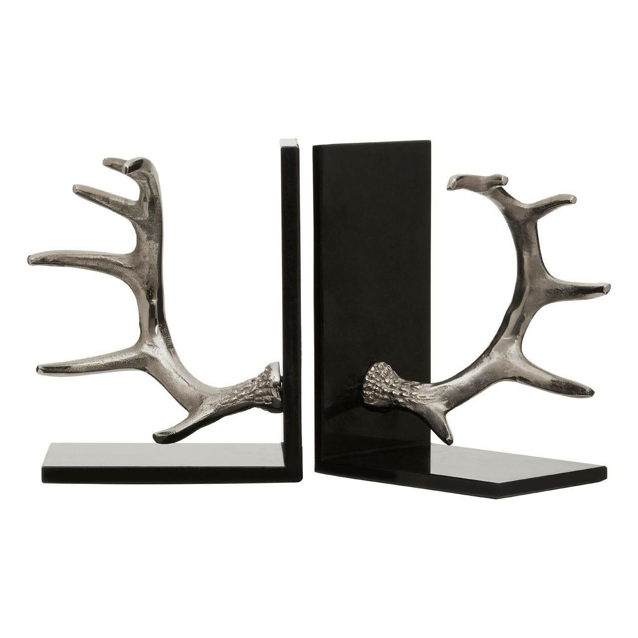 Introduce a touch of elegance and sophistication to your home decor with this Set of 2 Antler Bookends from Hamilton Interiors. Each bookend features a unique antler design, finished in a reflective silver tone for a sleek and modern look. The smooth metallic finish is complemented by carved detailing at the base, adding texture and depth to the overall design.