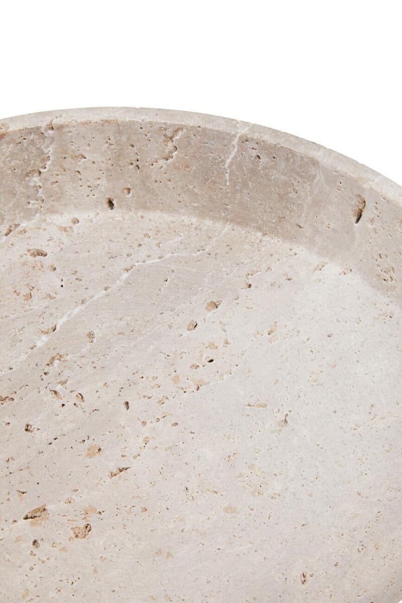 The Tibor bowl is crafted from travertine, a natural limestone known for its fibrous texture in earthy and neutral tones. The bowl has a round shape and a textured finish, creating an appealing look. The artisanal design enhances its timeless appeal. *Due to the natural materials used in the creation of these products, slight variations in colour, texture, and size may occur. These natural variations are an inherent characteristic and should be considered part of the unique beauty of each piece.*