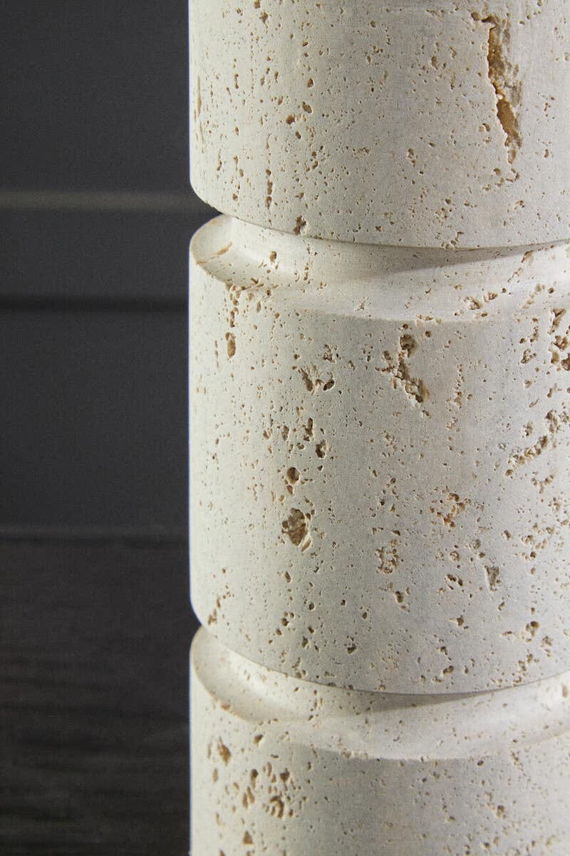 This small candle holder is crafted from travertine, a natural limestone known for its fibrous texture in earthy and neutral tones. Featuring a stacked design, it is built with precison and is ideal for decorating dining table, mantel, or any other corner of the home. *Due to the natural materials used in the creation of these products, slight variations in color, texture, and size may occur. These natural variations are an inherent characteristic and should be considered part of the unique beauty of each piece.