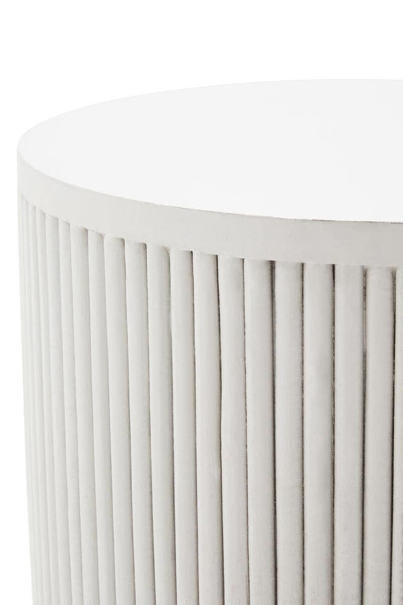 Made from whitewashed eco friendly mango wood, this modern side table features ridge detail that adds a textured look to the space. The compact size and neutral tones of this side table complement nordic inspired living room aesthetics.