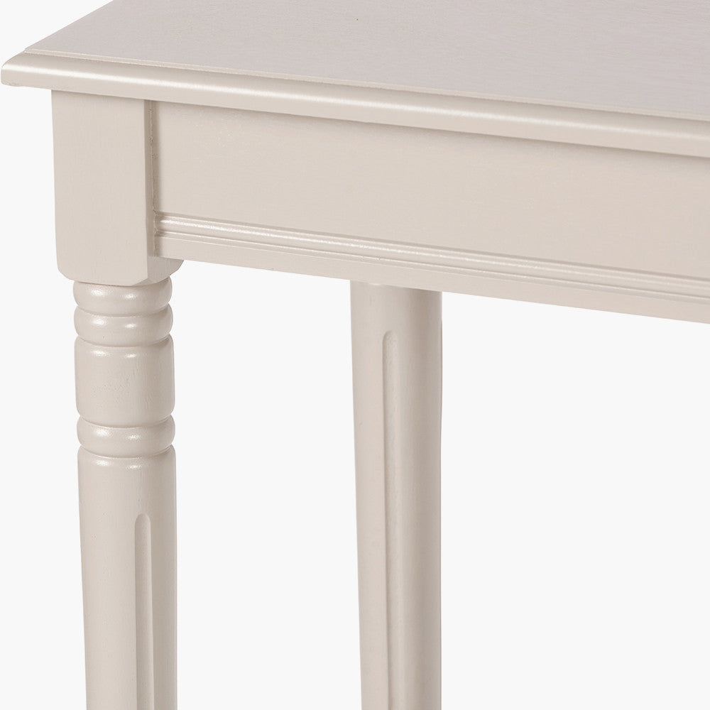 Introducing the Heritage Putty Pine Wood Console Table, a timeless and elegant addition to any home. This rectangular console table features a beautiful putty coloured finish that will complement any interior design. With a lower shelf for additional storage, this table combines both style and functionality. Measuring W80 x D36 x H80cm, this console table is the perfect size for any room. Its sturdy pine wood construction ensures durability and longevity, making it a worthwhile investment for your home. At House of Isabella, we pride ourselves on providing luxurious furniture and interiors with fast and free delivery across the UK. Don't wait any longer to add this stunning console table to your home. Shop now and elevate your space with our Heritage Putty Pine Wood Console Table.