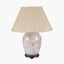 The iconic Jenny Worrall brand boasts a range of truly exquisite table lamp designs. Created using the traditional technique of potichomania, delicate decals are applied by hand within the base of the glass table lamp. Each lamp design is then carefully built up with layers of hand-sponged lustre and colour to create the finished effect. The Honeysuckle design is pictured on a cream champagne colour background with a cream flower. The gold accenting gives the design depth and is synonymous with the Jenny Worrall brand. The glass is then completed with an antique brass finish base and top. The stunning glass table lamp base is styled with a 100% silk empire shade in a soft almond colour to complement the base.