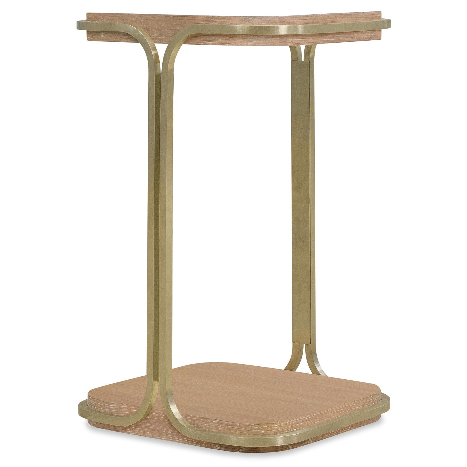 Elegant Mixed Materials: Anchored by a light Desert Oak finish and accented with a subtly metallic finished base, this accent table harmonises organic textures with contemporary lines for a nuanced, elevated presence.