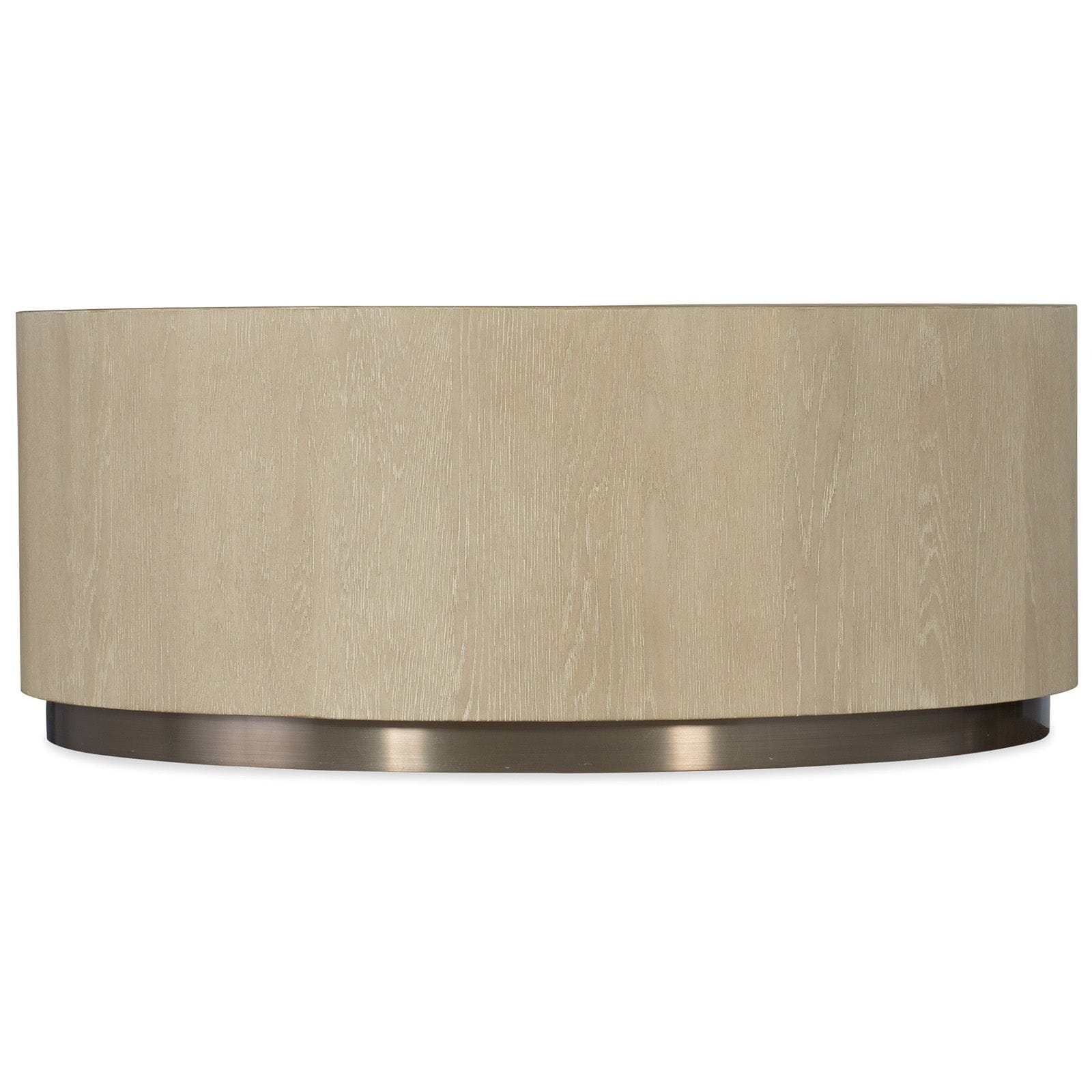 Introduce timeless elegance and sculptural appeal to your living room with the Hooker Furniture Cascade Coffee Table — a beautifully designed piece that blends soft organic form with refined materials. Featuring a distinctive drum-style silhouette in a warm oak wood tone, this coffee table brings natural richness and understated luxury into your space. The contrasting brushed brass base adds a modern metallic accent, elevating the overall design while offering stability and visual balance.