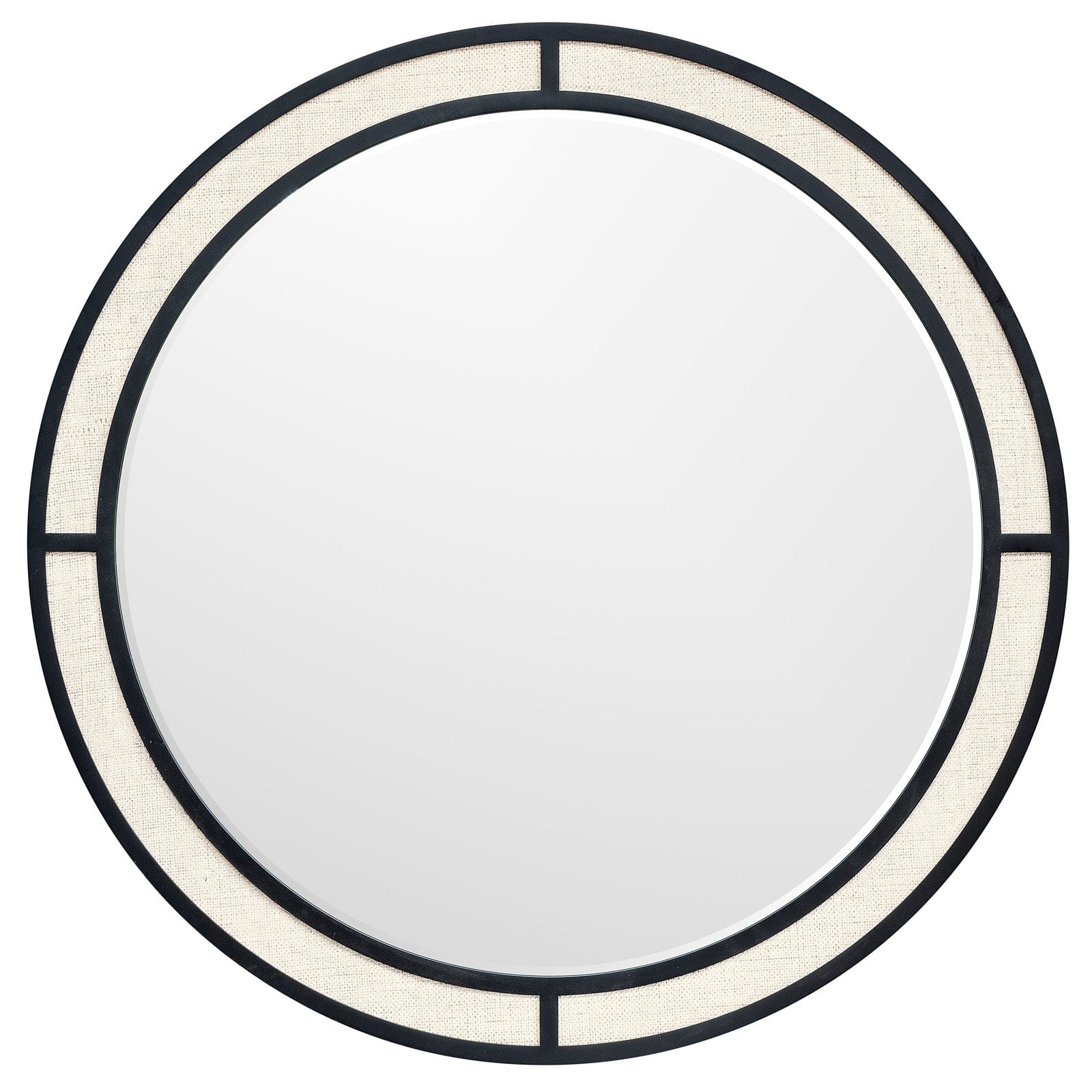 Create a striking focal point in any room with the Hooker Furniture Tranquillity Round Mirror — a beautifully balanced piece that blends modern minimalism with rich textural detail. Featuring a bold black metal frame paired with a refined textured grasscloth inlay, this round wall mirror brings depth, contrast, and contemporary style to your living space. The juxtaposition of sleek metal and natural texture creates a distinctive look that elevates hallways, bedrooms, bathrooms, and living areas with effortless sophistication.
