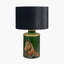 The lacquered iron base in rich green teamed with our marvellous horse motif has a very regal feel. The traditional yet quirky style table lamp base is ideal for any space within your home. Placed on a side table in your living room or on a console table in your hall this lamp base is a striking addition to any interior. The lamp base has been lovingly crafted by a wonderful team of talented craftspeople in India and is styled with a luxurious cylinder black velvet lamp shade, with contrasting metallic bronze card inner.