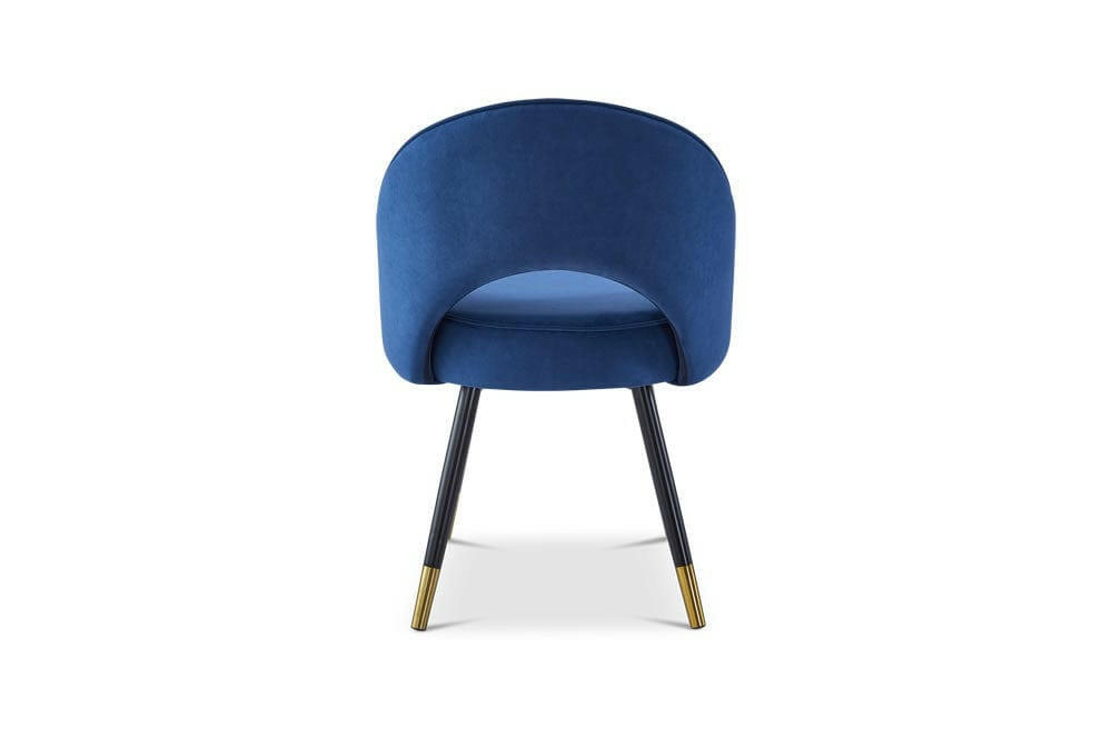 The Hoxton Dining Chair in Blue (Set of 2) is the perfect addition to any home or interior design project. Upholstered in a luxurious blue matte velvet fabric, this chair exudes elegance and sophistication. The black legs with gold cups add a touch of glamour to the overall design. Sold in sets of 2, the Hoxton Dining Chair is a must-have for any dining room or living space.