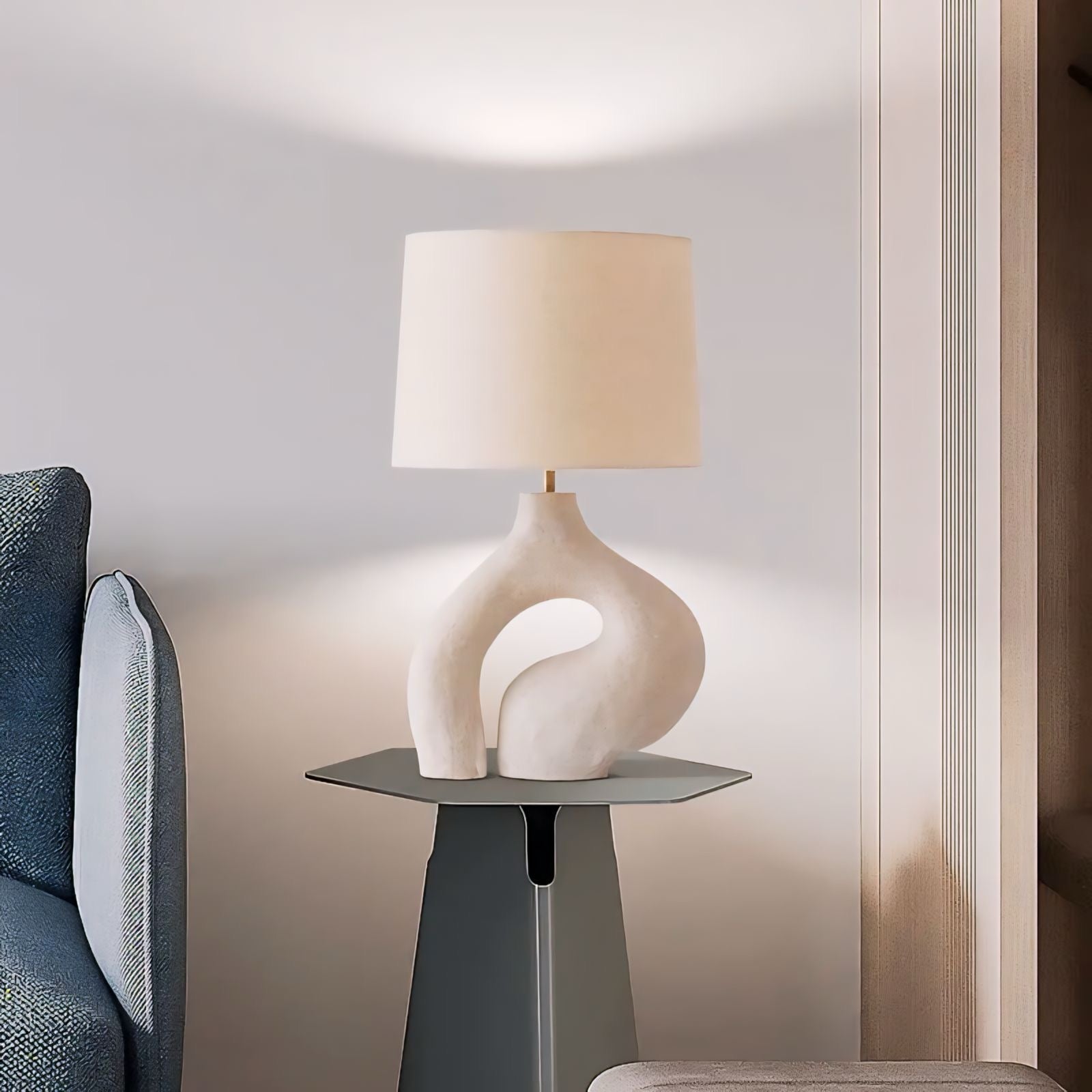 Enhance your decor with our elegantly designed table lamps. Featuring a sculptural base and a soft fabric shade, these lamps combine modern art with functionality. The unique form adds a touch of sophistication, while the warm light creates a cosy ambiance. Perfect for living rooms, bedrooms, or offices, these lamps bring both style and practicality to your space. Crafted with care, they are a beautiful addition to any setting.