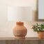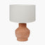 This terracotta table lamp will bring natural beauty to any home. Handcrafted in India from terracotta in a natural finish, the lamp base is a weighty piece and features an organic shape. Completing the look is an open weave white cotton cylinder lamp shade, providing a stylish contrast.