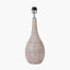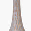 This elegant wood table lamp offers a minimalist touch with its grey wash and etched marks. Its bottle-shaped design is sure to become a centrepiece of your home. Topped with a cotton gathered, tapered lamp shade, adorned with a stunning Ikat pattern in shades of purple and lilac.