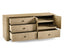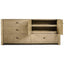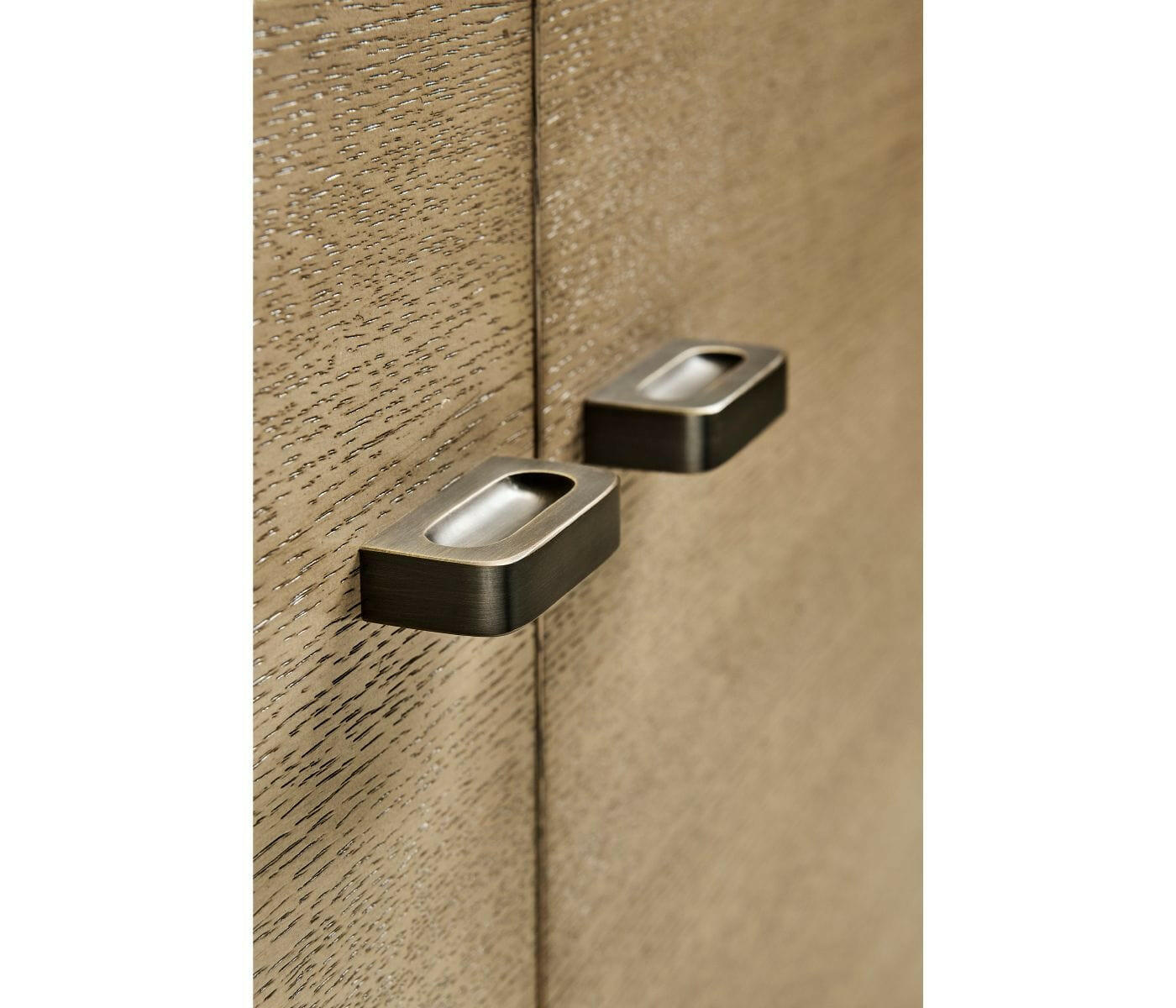 Built from American white oak with a lightly textured, ceruse finish. Pulls are cast from brass with a deep, rich patina. Cabinet features one pull out shelf.