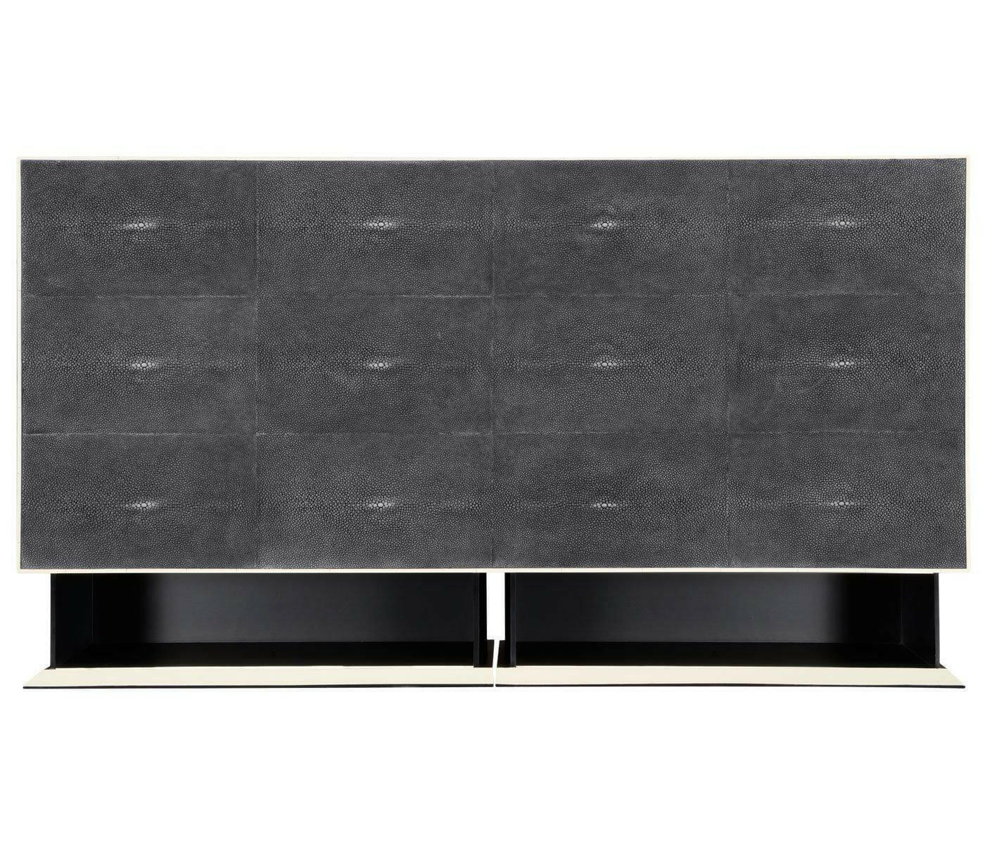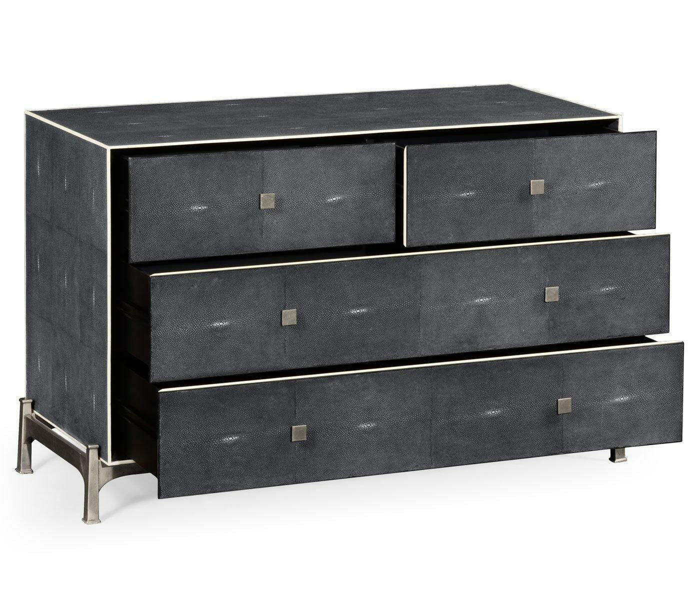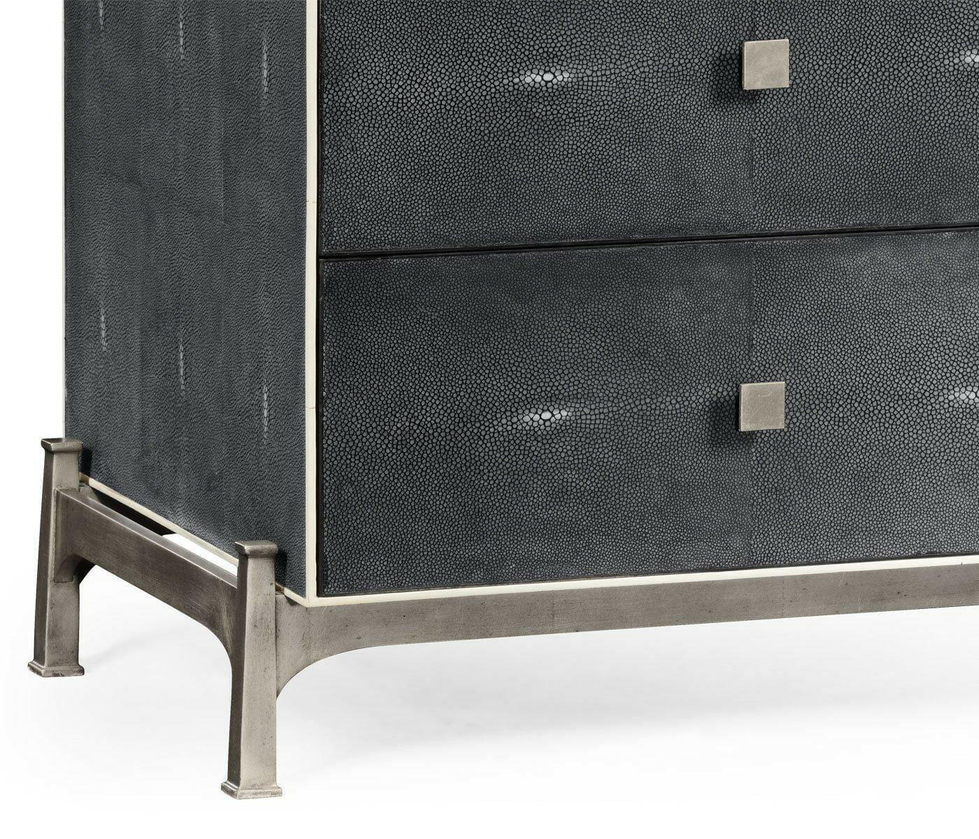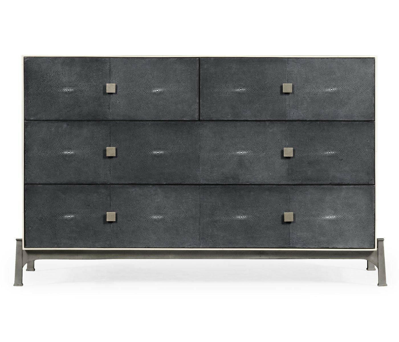 Jonathan Charles Large Chest of Drawers 1930s in Anthracite Shagreen - Silver