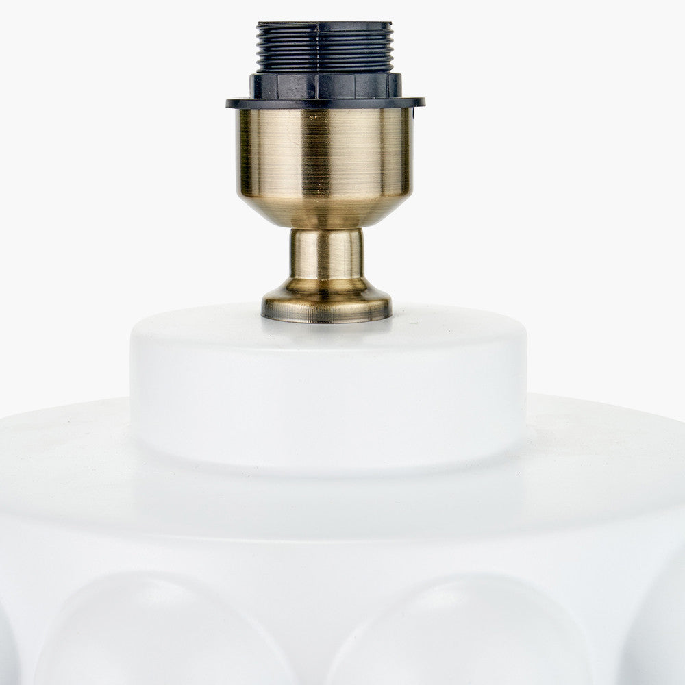 A beautiful ceramic table lamp base with a bold geometric grey and white circle pattern, complimented with gold detailing. This table lamp looks lovely paired with the simple, modern steel grey cotton mix lamp shade, which is sure to create a focal point in your room.